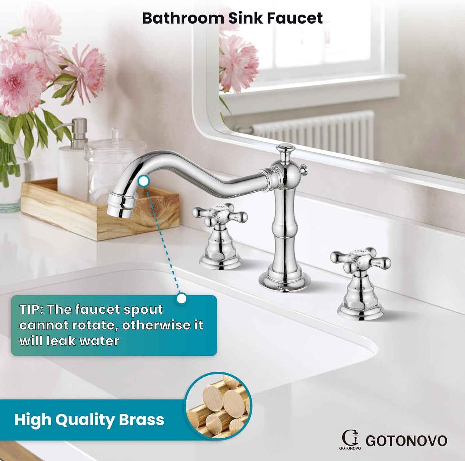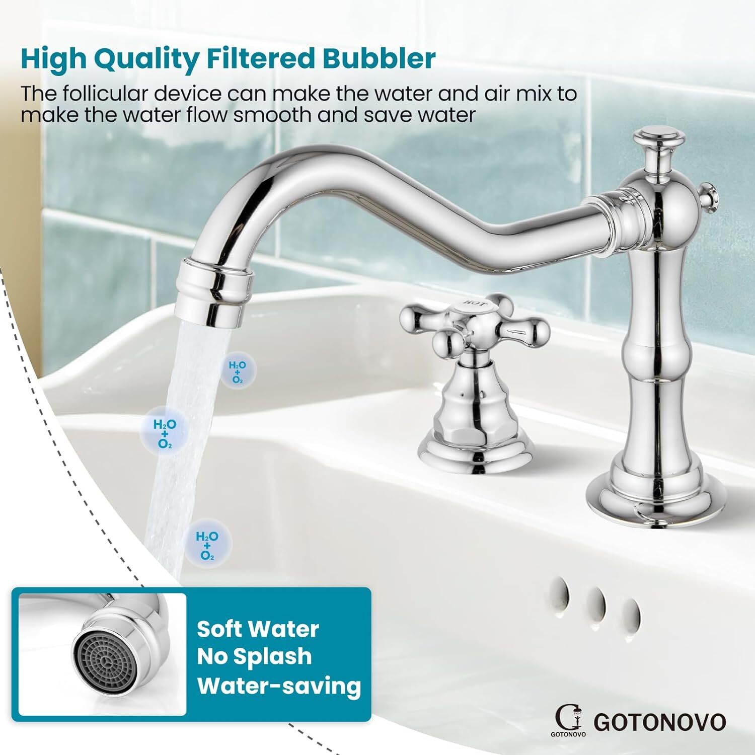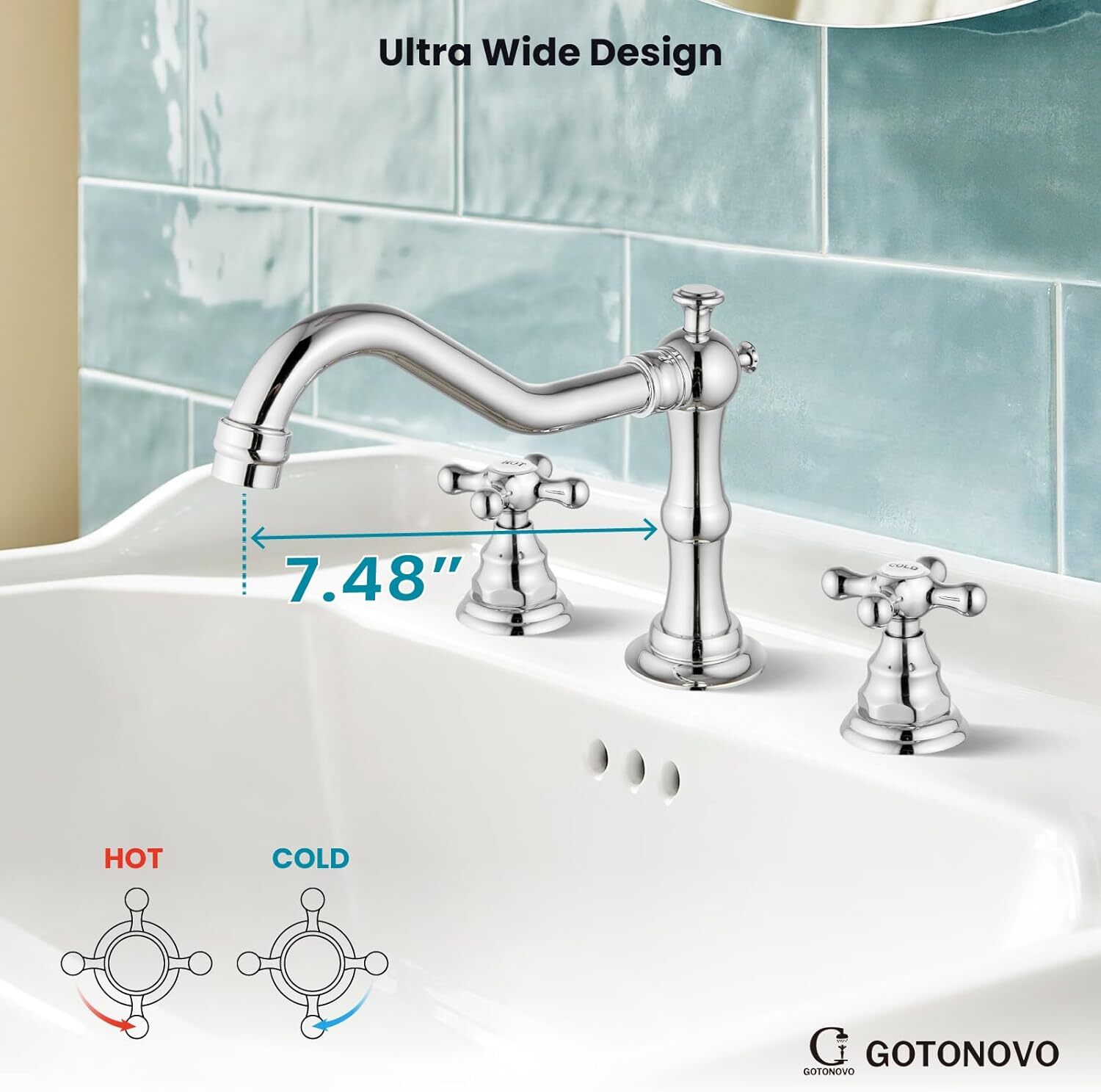 Polished Chrome Widespread Bathroom Faucet 8 Basin 3Hole Waterfall Tub Mixer