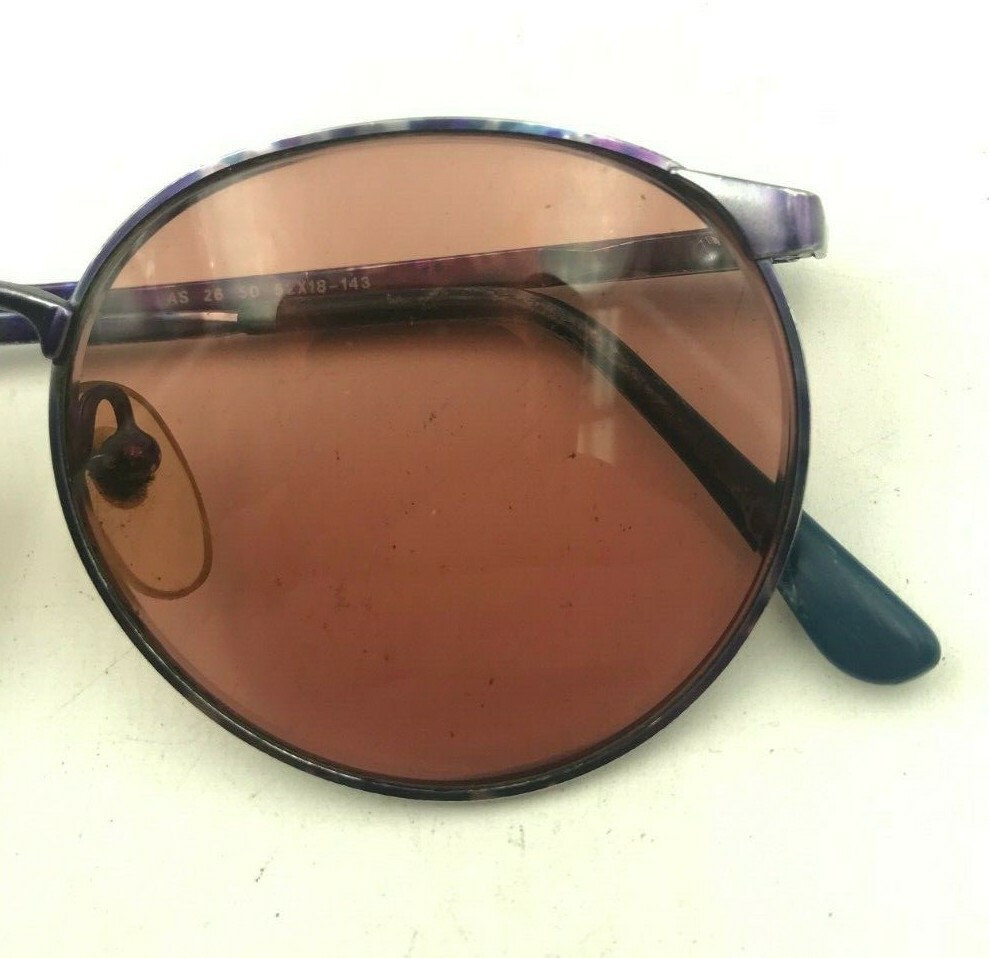 Vintage Ashley Stewart AS 26 50 Blue Purple Metal Round Sunglasses Eyeglasses