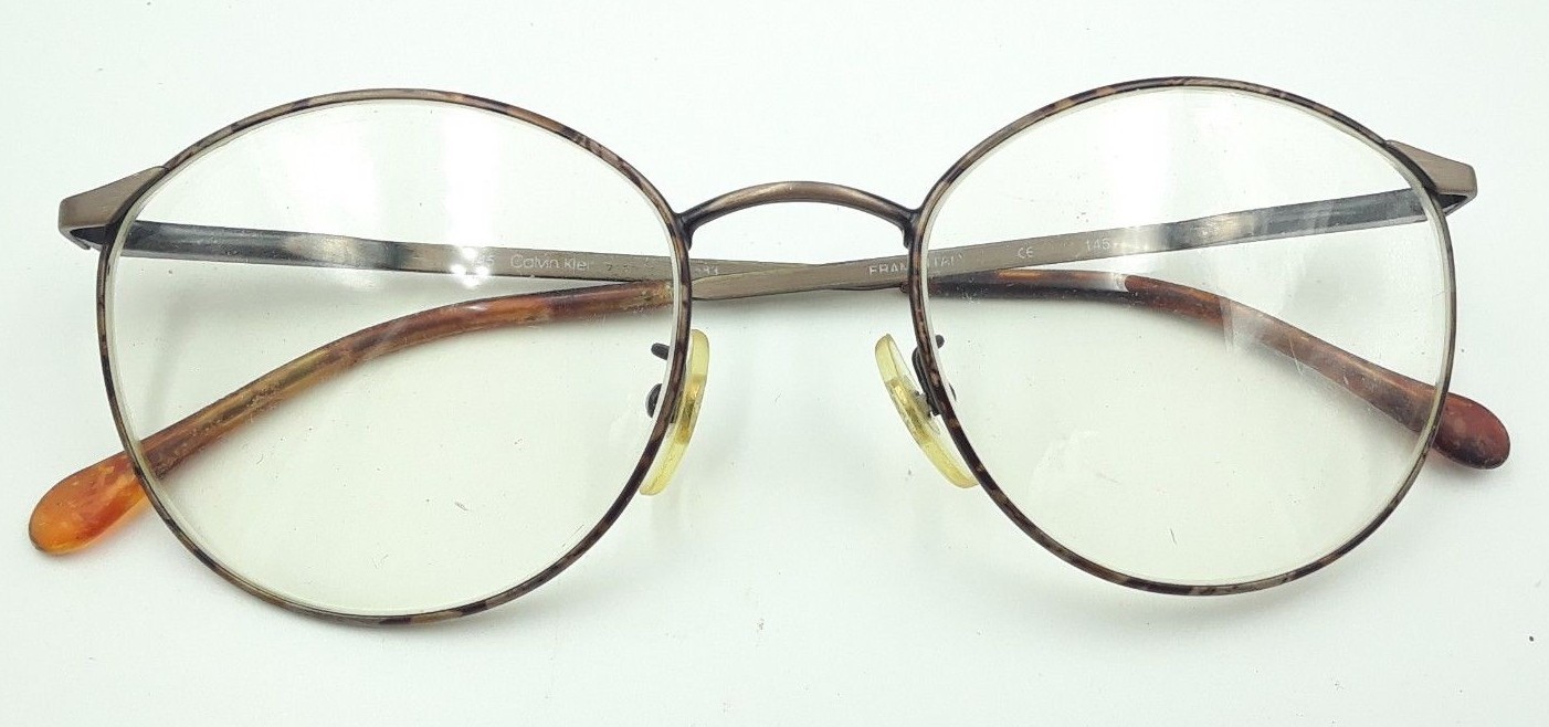 как выглядит Vintage Calvin Klein 583 Gold Metal Marbled Round Sunglasses FRAMES ONLY фото