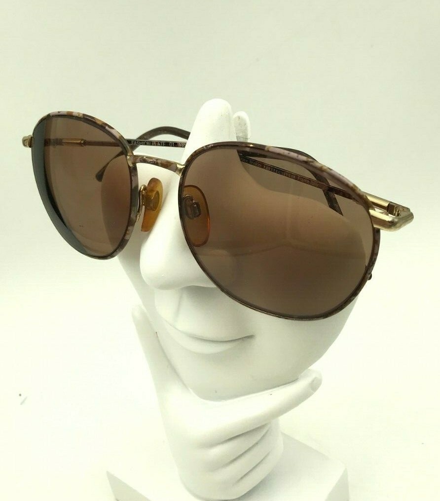 как выглядит Vintage Christie Brinkley Fashion Plate Brown Gold Oval Sunglasses FRAMES ONLY фото