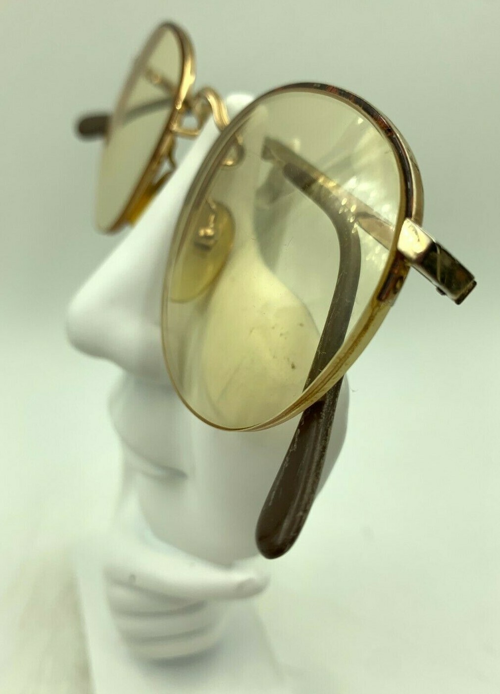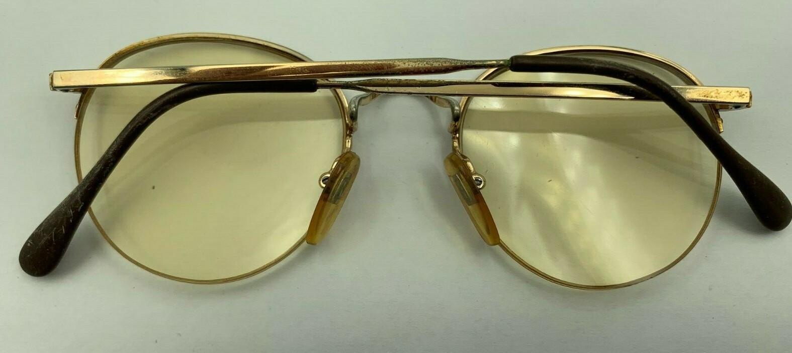 как выглядит Vintage Cottet 1898 Brown Gold Metal Round Half-Rimmed Sunglasses FRAMES ONLY фото