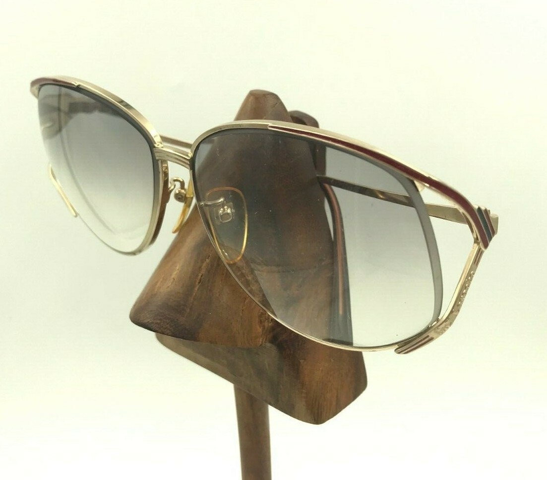 как выглядит Vintage Guy Laroche 114-F Gold Burgundy Oversized Oval Sunglasses FRAMES ONLY фото