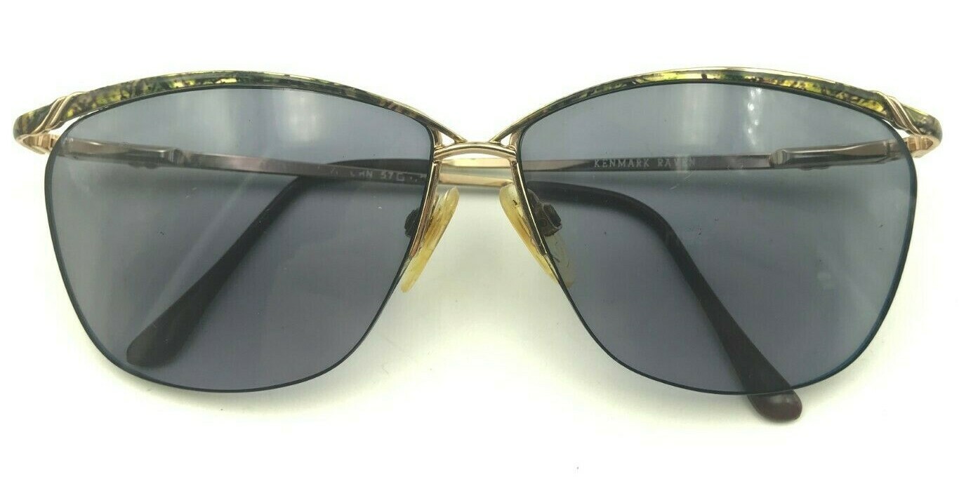 Vintage Kenmark Raven Gold Green Metal Half-Rimmed Oval Sunglasses FRAMES ONLY