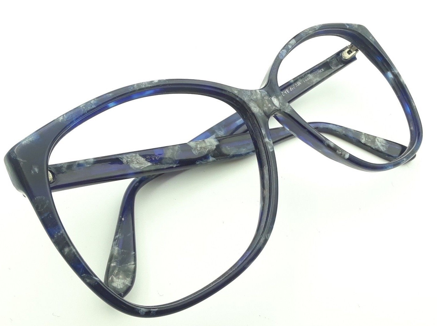 Vintage Lawrence Eye Wear Oversized Round Blue Marbled Sunglasses Frames France