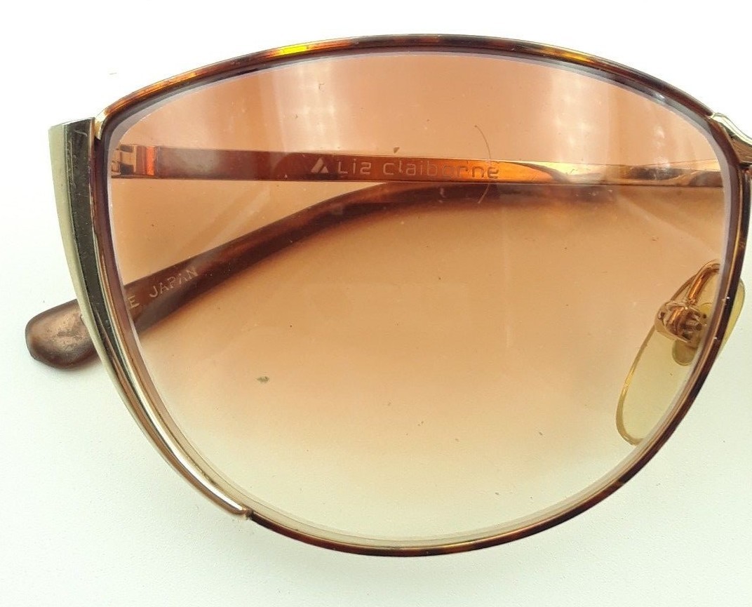 как выглядит Vintage Liz Claiborne C85 TOR Tortoise Gold Metal Cat Eye Sunglasses FRAMES ONLY фото