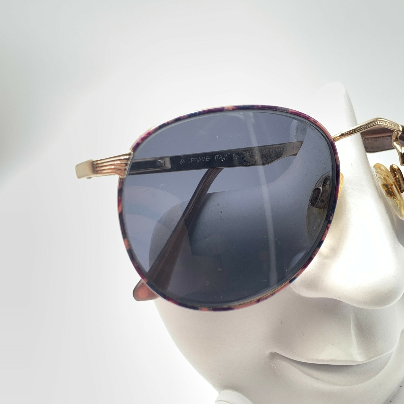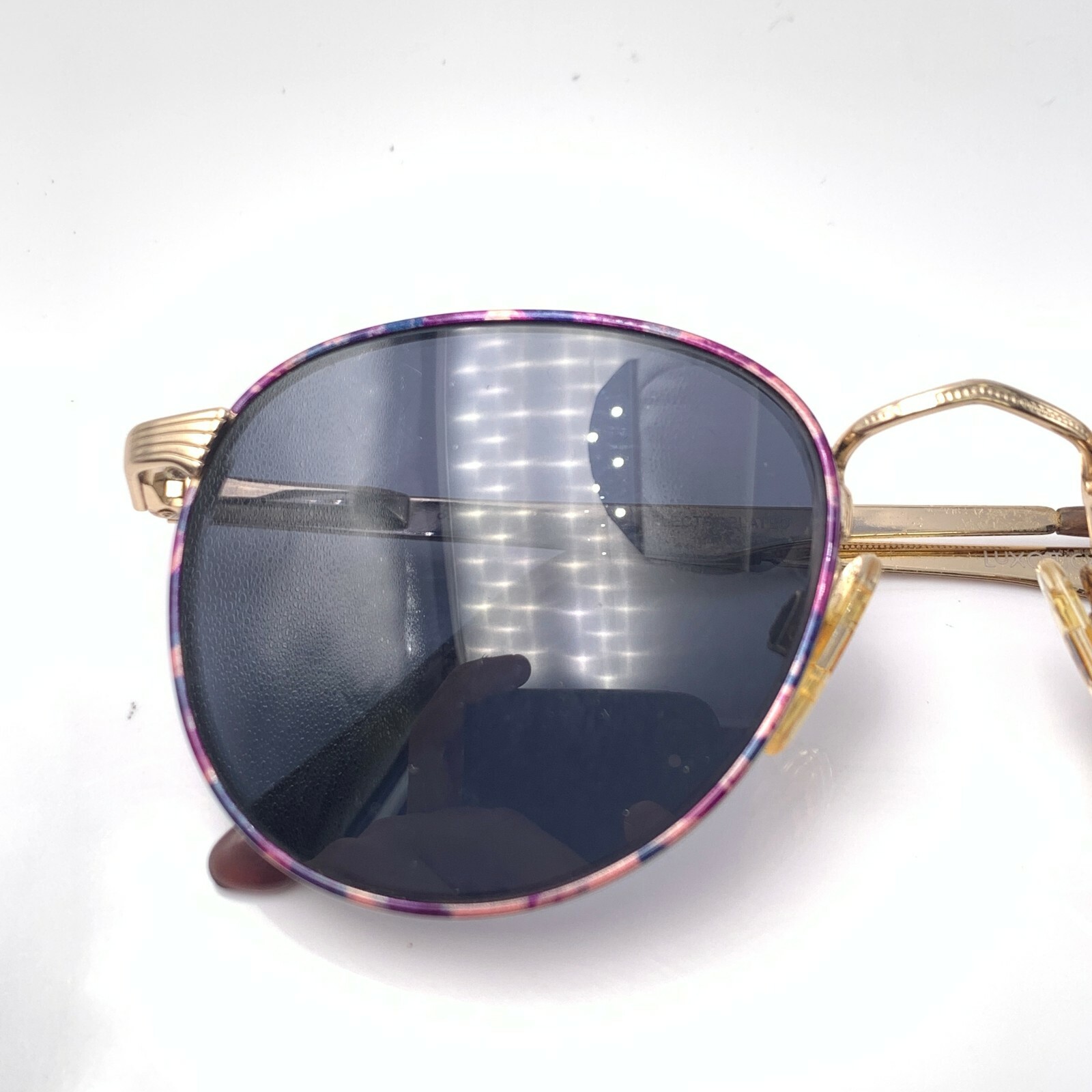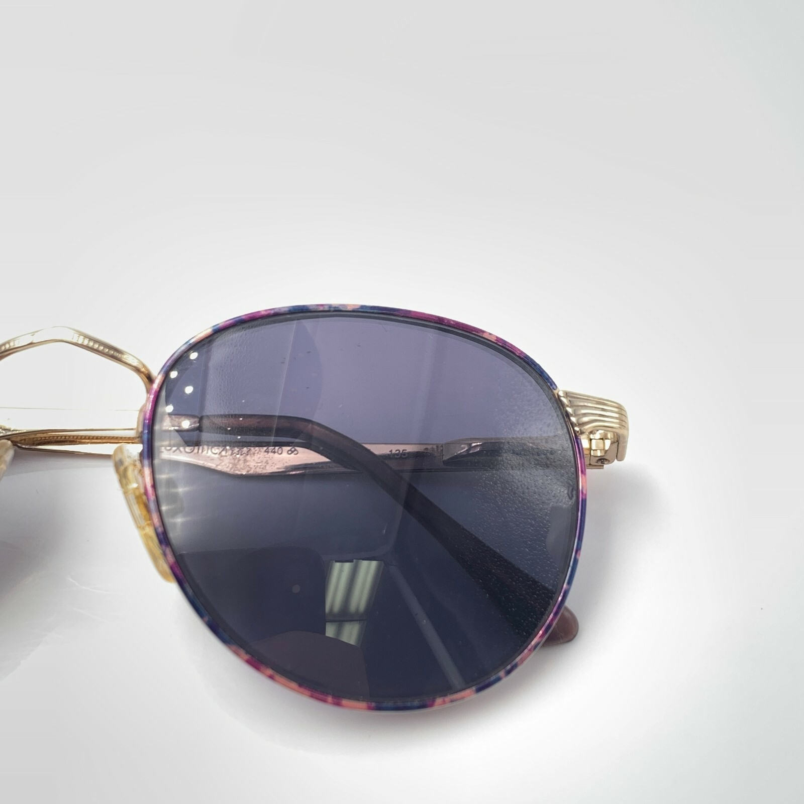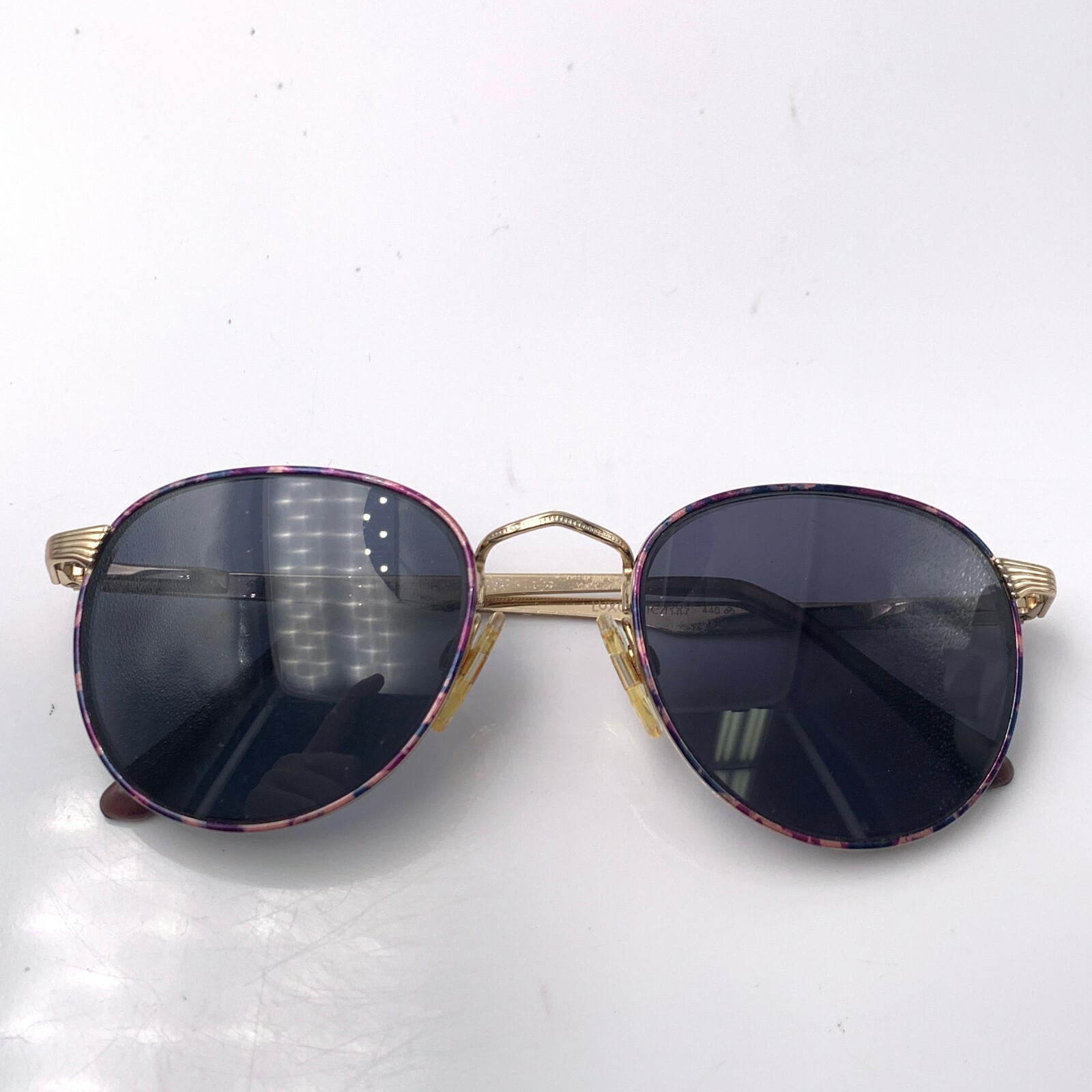 как выглядит Vintage Luxottica 440 Purple Pink Gold Metal Oval Sunglasses Italy FRAMES ONLY фото