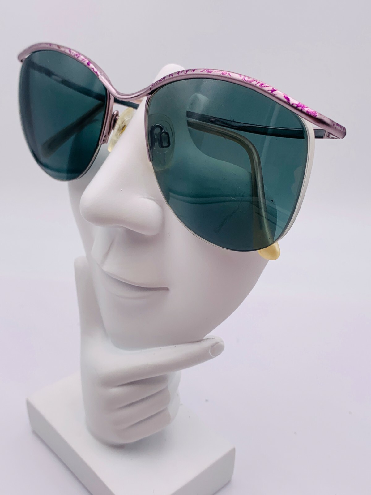 как выглядит Vintage Marchon Ashton Purple Pink Metal Oval Half-Rimmed Sunglasses FRAMES ONLY фото