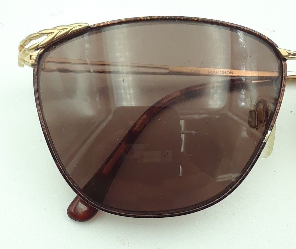 как выглядит Vintage Marchon Jasmine Golden Harvest Gold Metal Square Sunglasses FRAMES ONLY фото