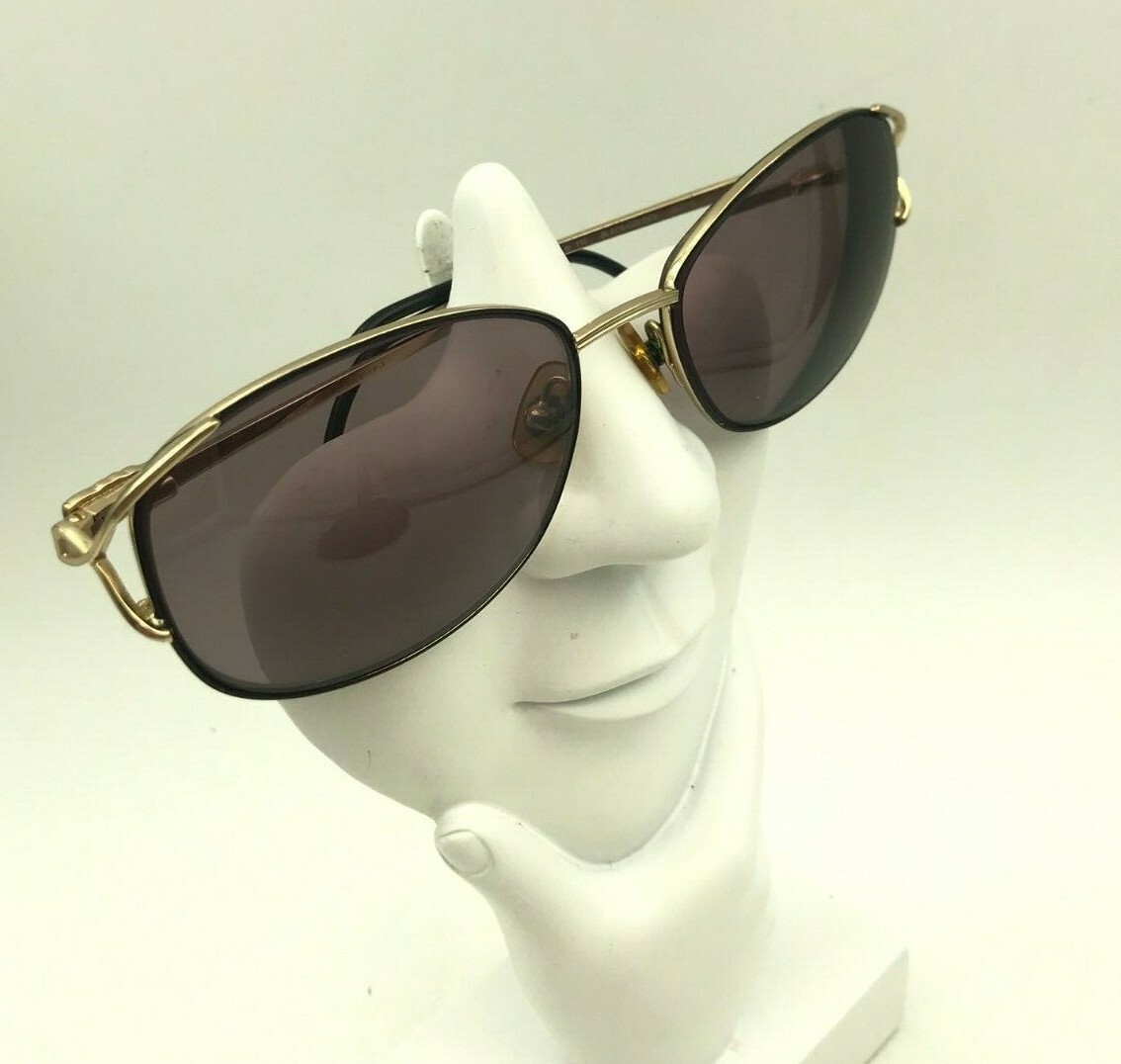 как выглядит Vintage Marchon Tres Jolie 110 Black Gold Metal Oval Sunglasses FRAMES ONLY фото