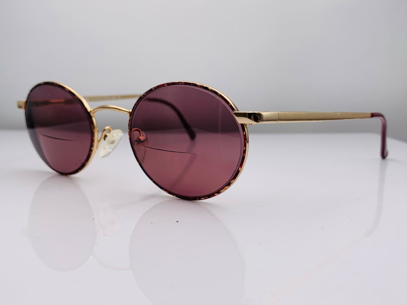 как выглядит Vintage National Creative Optics Alex Gold Burgundy Oval Sunglasses FRAMES ONLY фото