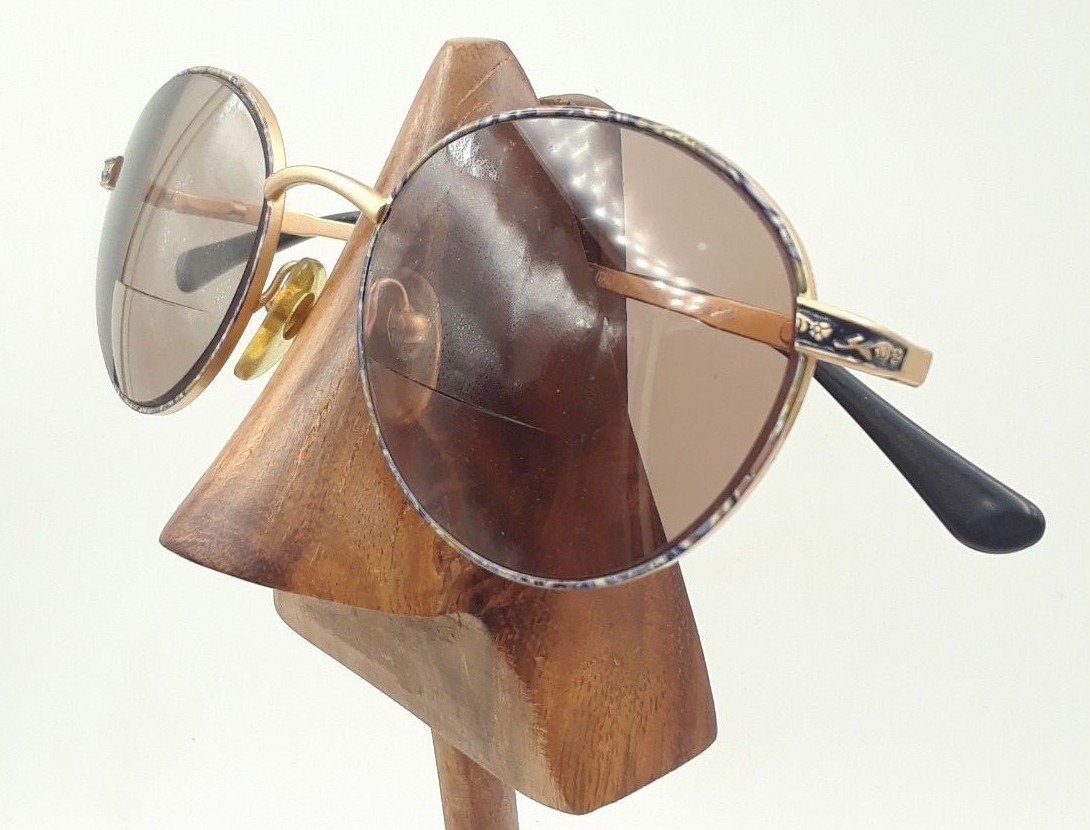как выглядит Vintage Pappagallo Blue Mauve Marble Gold Metal Round Sunglasses FRAMES ONLY фото