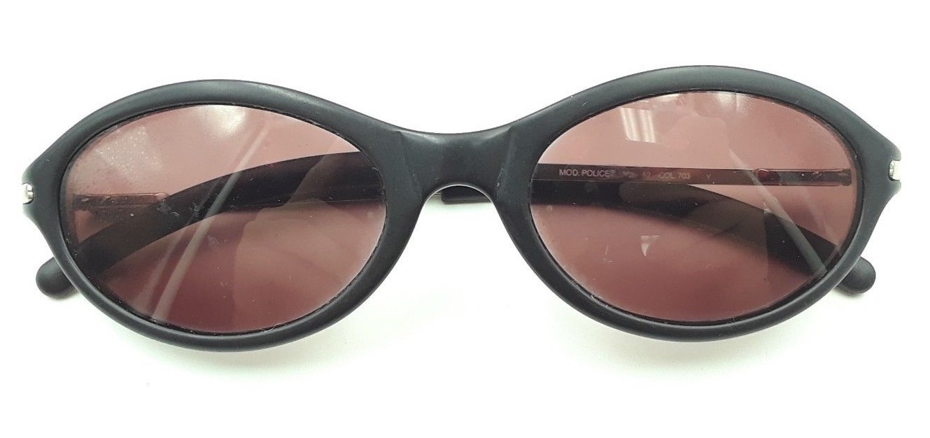 Vintage Police 301 52 703 Silver Metal Black Oval Sunglasses FRAMES ONLY