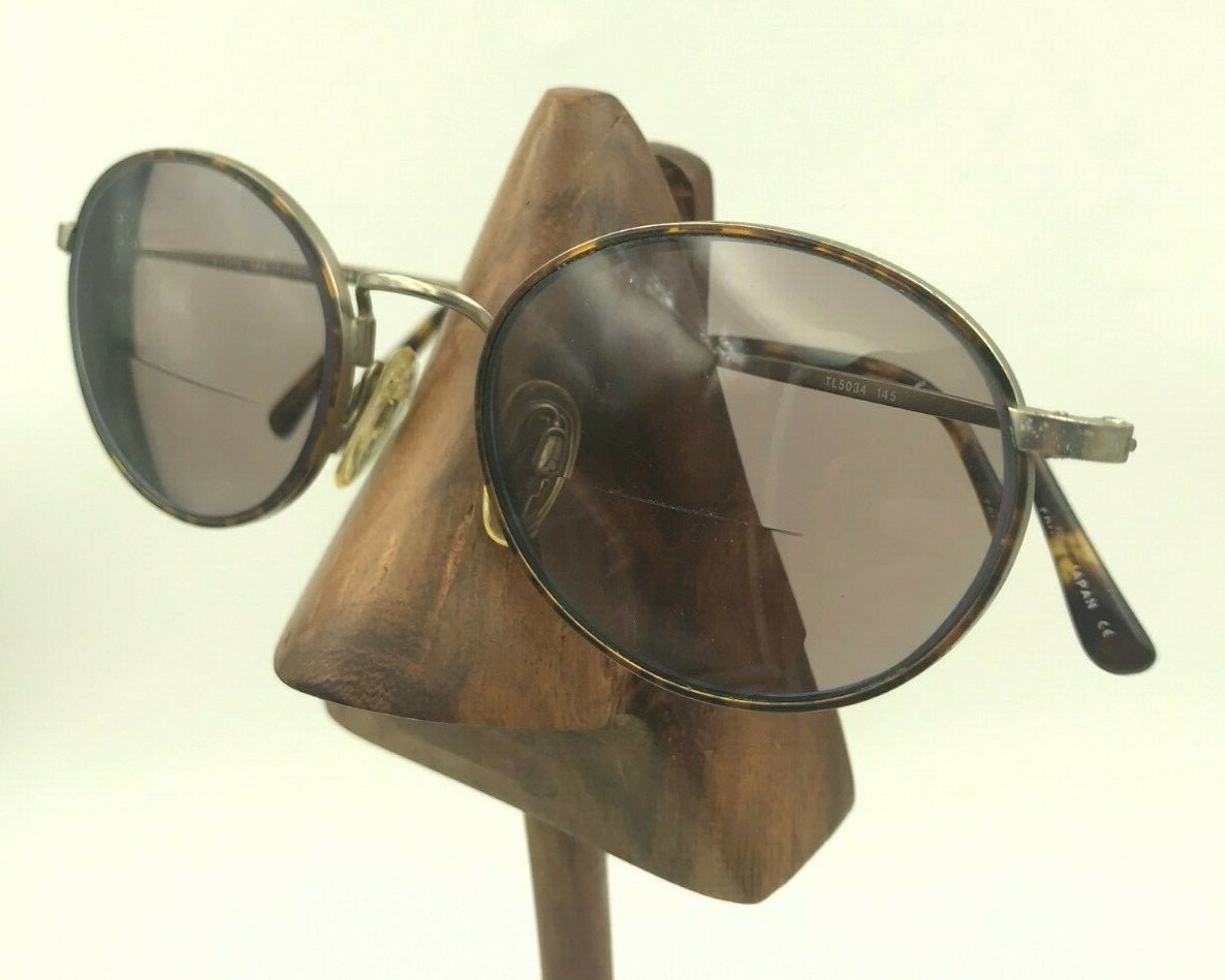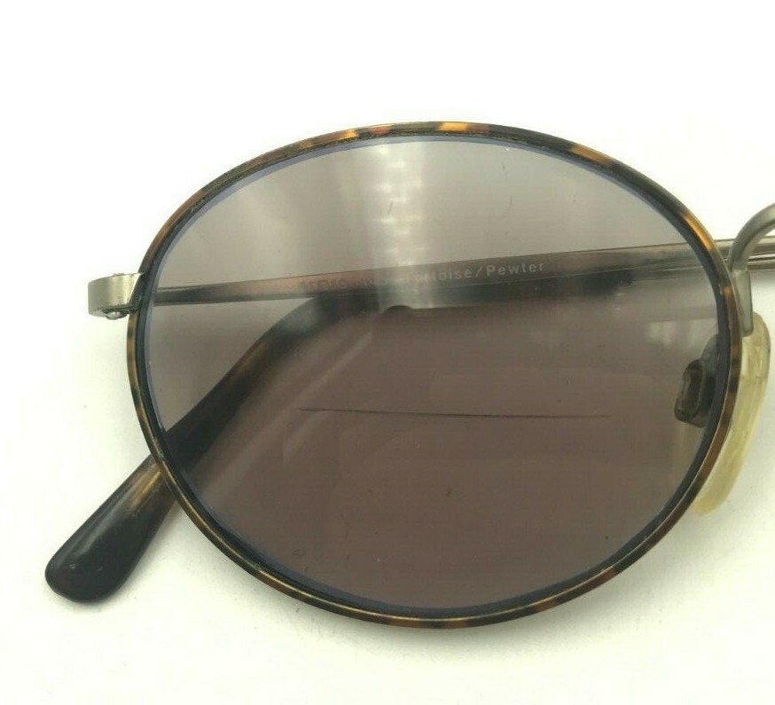 как выглядит Vintage TLS5034 Tortoise Pewter Metal Oval Sunglasses FRAMES ONLY фото