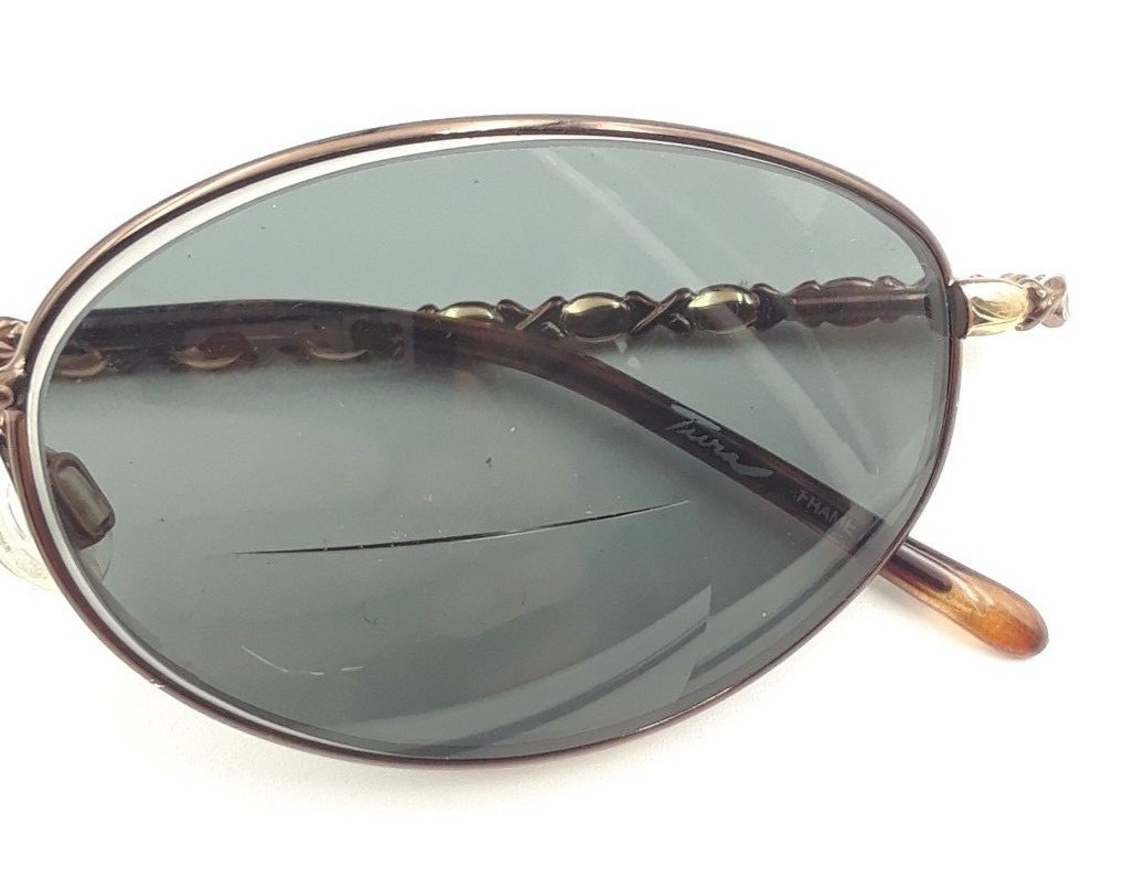 Vintage Tura 611 BRN Tortoise Gold Bronze Metal Oval Sunglasses FRAMES ONLY