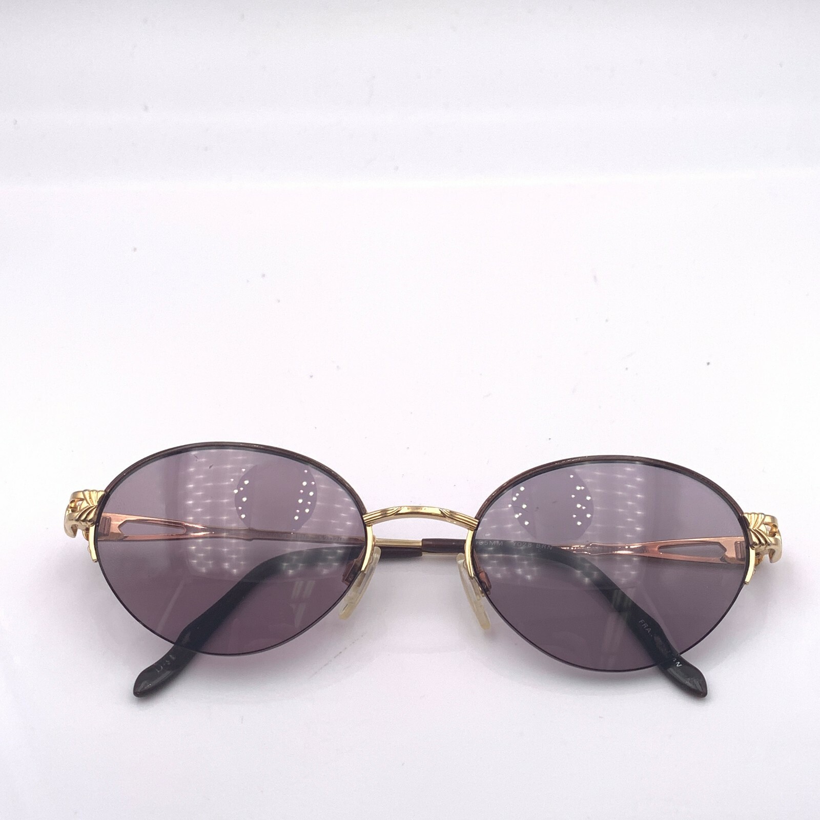 как выглядит Vintage Tura YO28 Brown Gold Metal Oval Half-Rimmed Sunglasses FRAMES ONLY фото