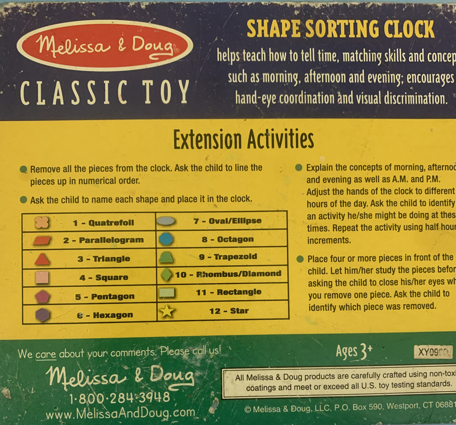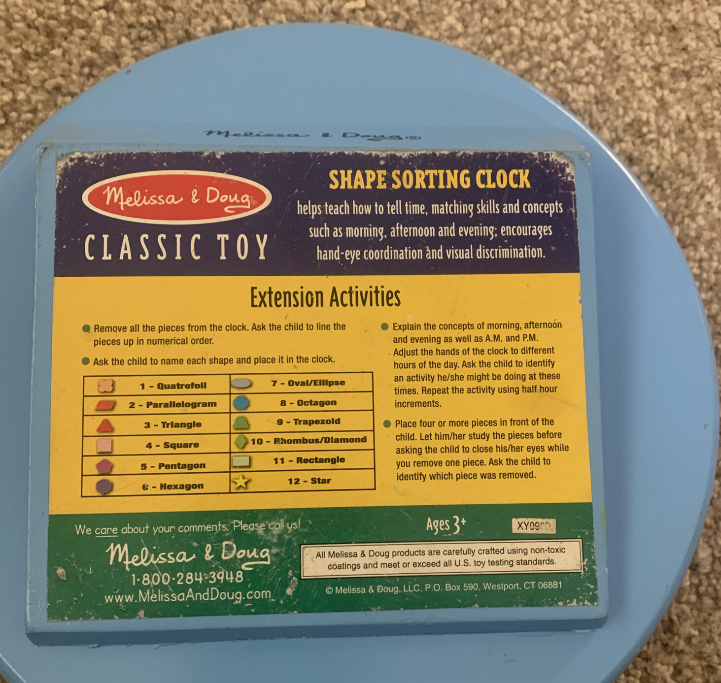 Melissa and Doug Shape Sorting Clock Classic Wooden Preschool Learning Tool B55