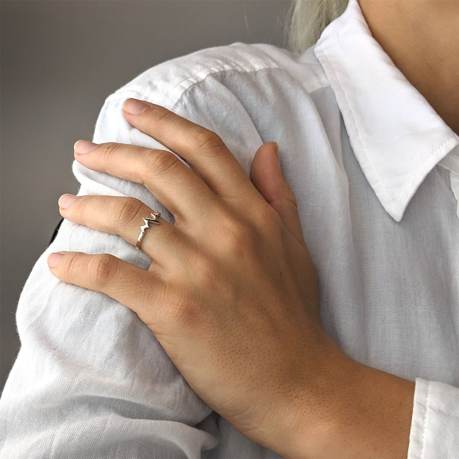 Silverly Sterling Silver Ring 925 Simple Cute Thin Band Heartbeat Stackable