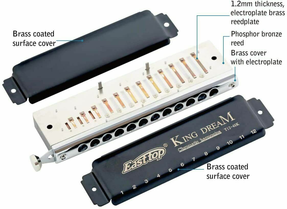 Easttop 12Hole 48Tone Chromatic Harmonica Key of C Harp woodwind Instrument Gift