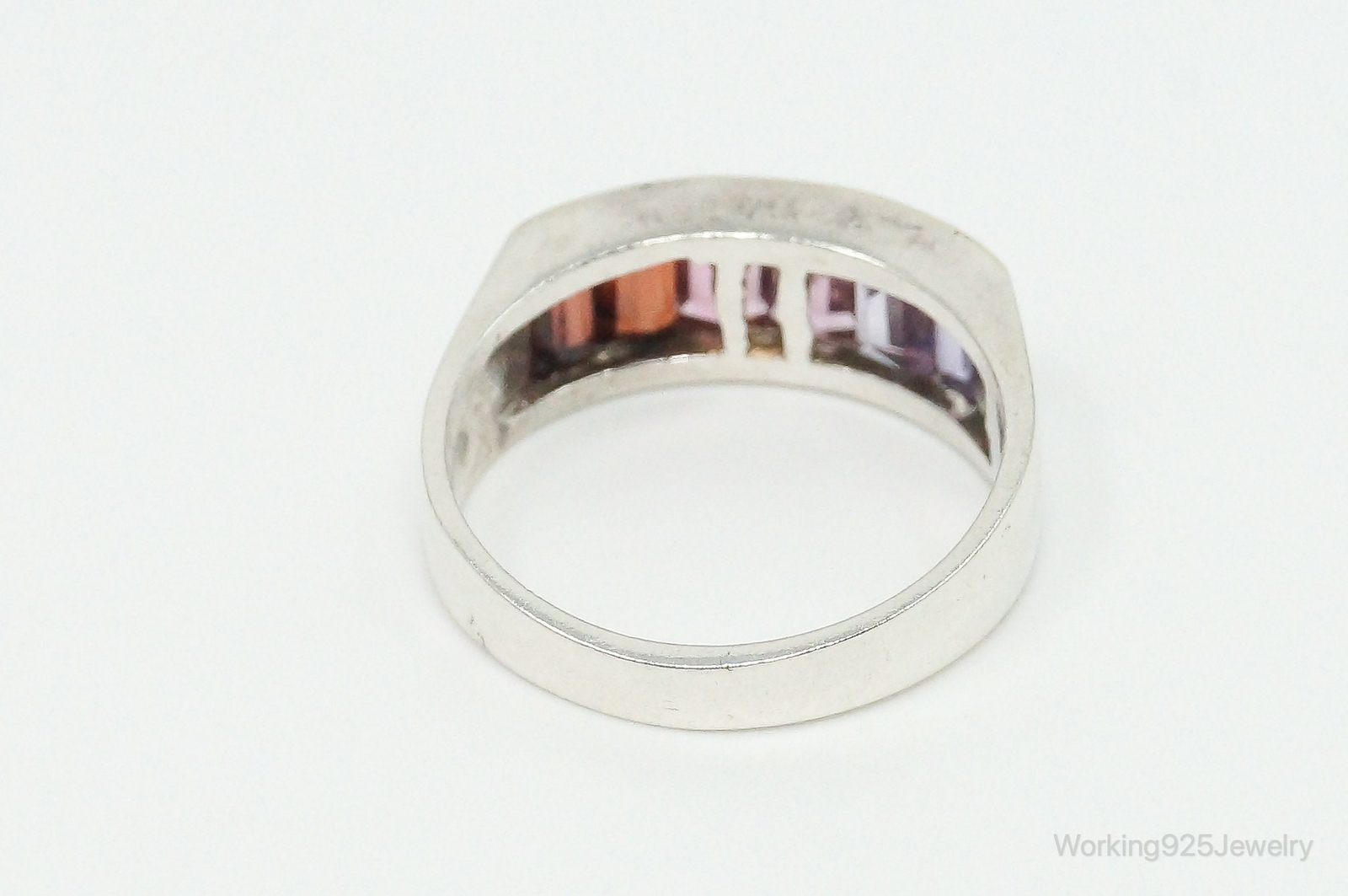 Vintage Multi Gem Gold Vermeil Sterling Silver Band Ring - Size 7.25