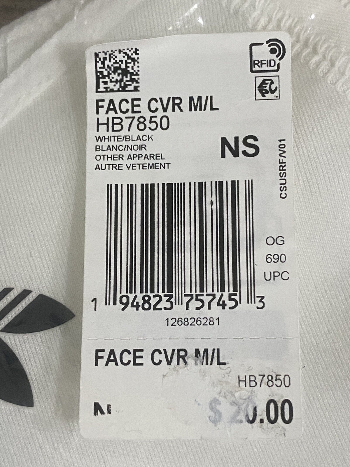 как выглядит Adidas Face Cover Mask 3-Pack White,M/L HB7850 100 Authentic New фото