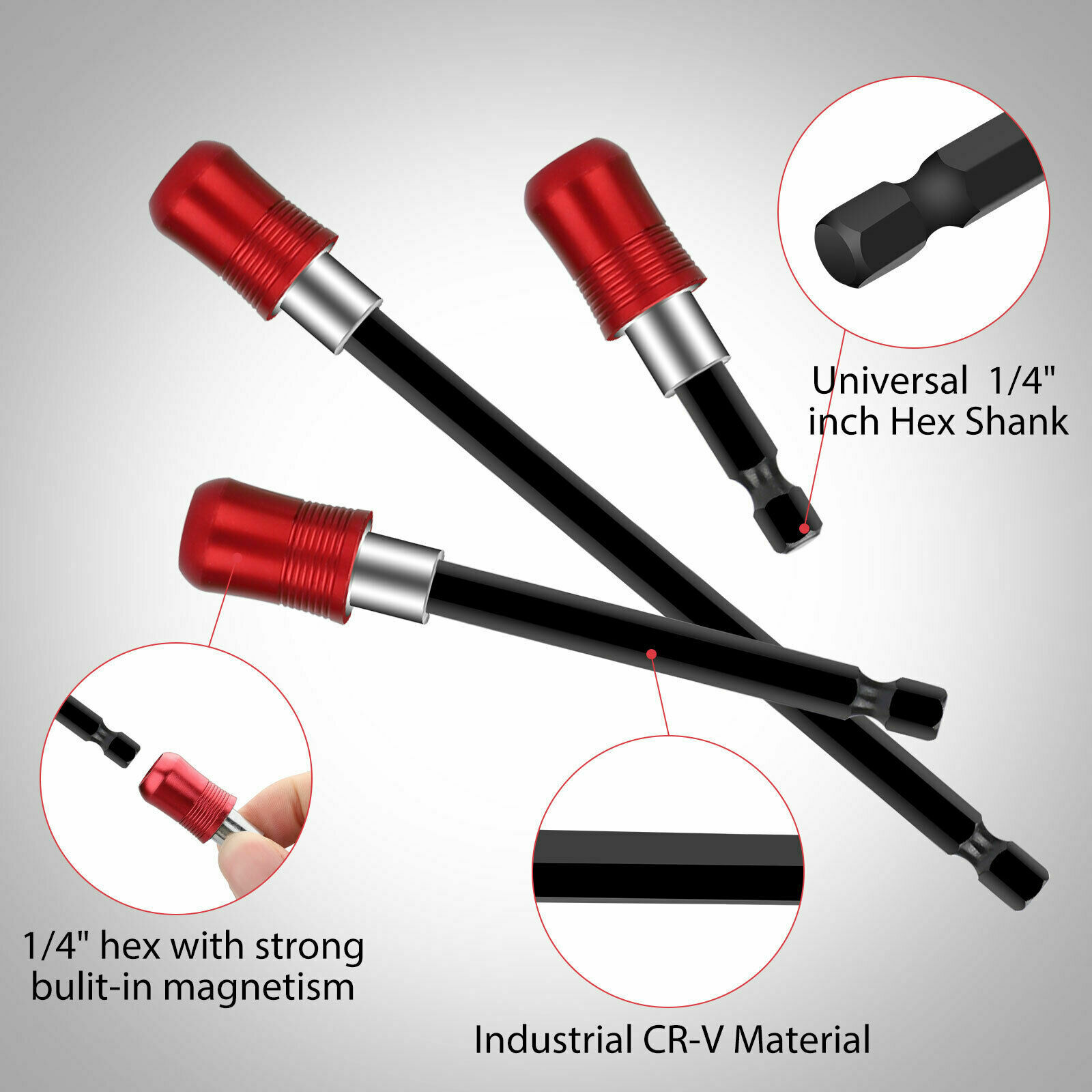 3Pcs 1/4 Hex Shank Quick Release Magnetic Screwdriver Extension Holder Drill Bit