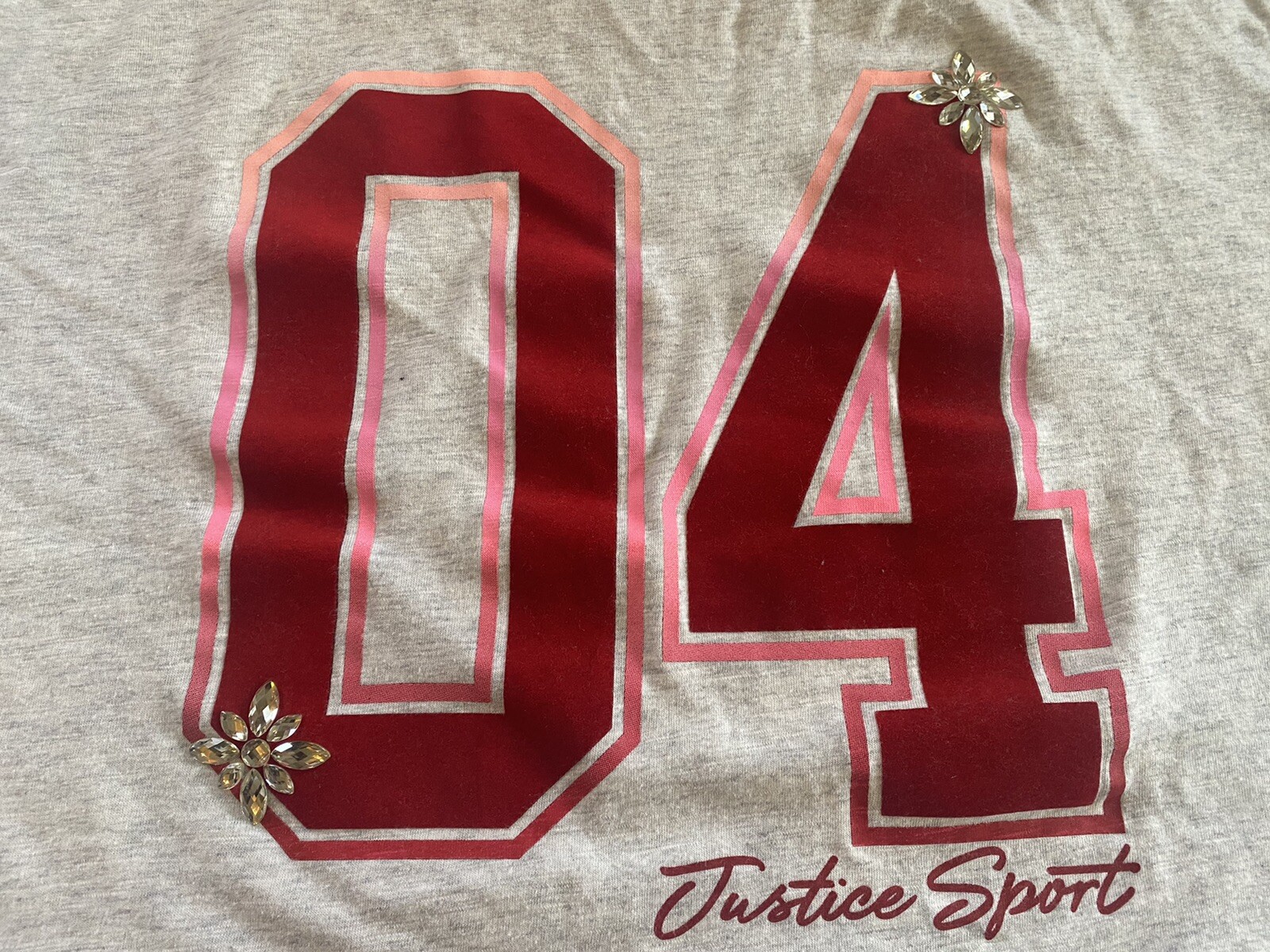 girls justice size 14 oversized boxy Ringer t-shirt grey red Embellished