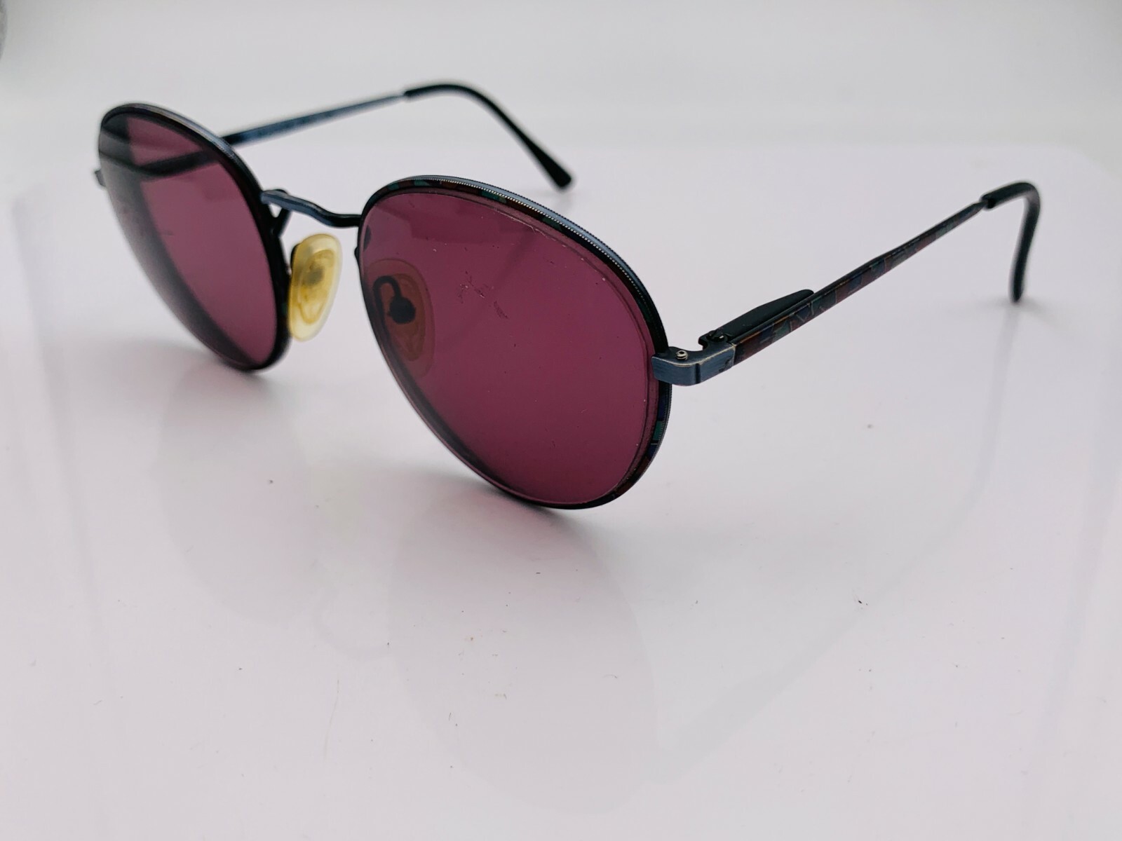 как выглядит Vintage Lawrence EYWEAR 3625 Brown Blue Metal Round Sunglasses FRAMES ONLY фото