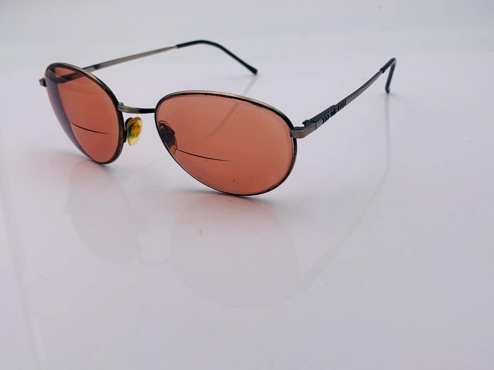 как выглядит Vintage Geoffrey Beene Brown Purple Gray Metal Oval Sunglasses FRAMES ONLY фото