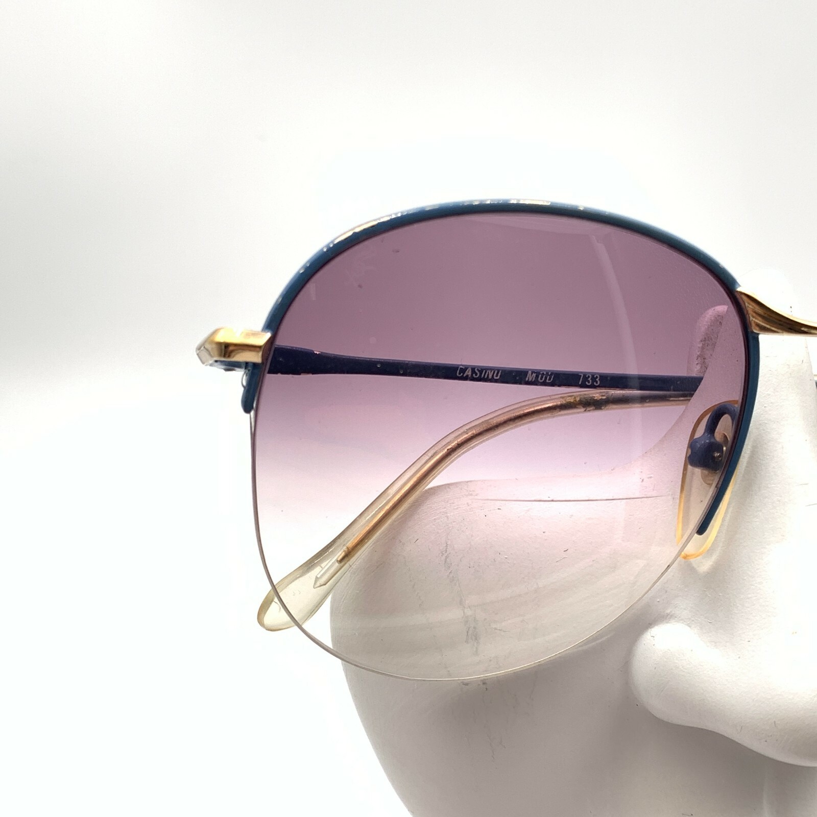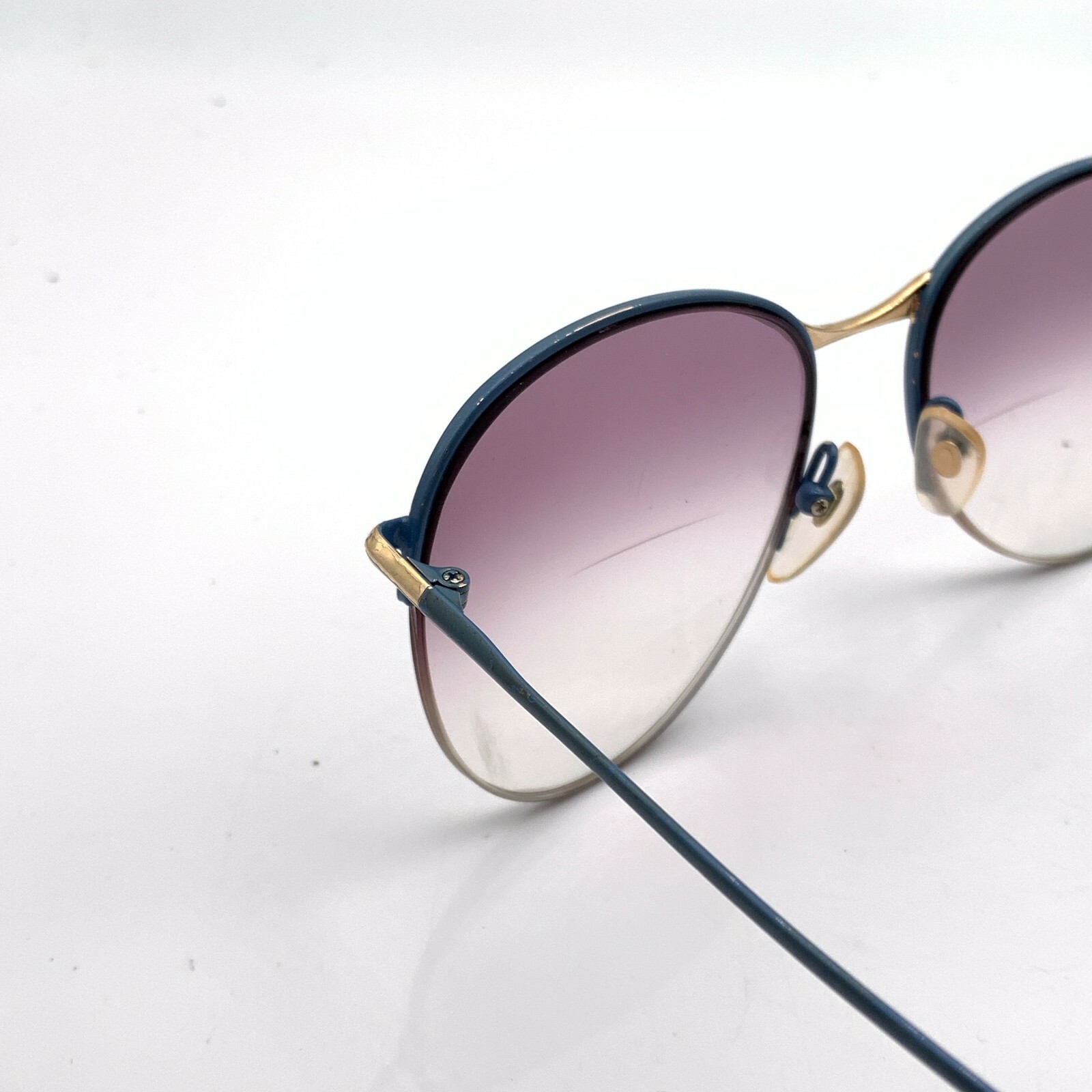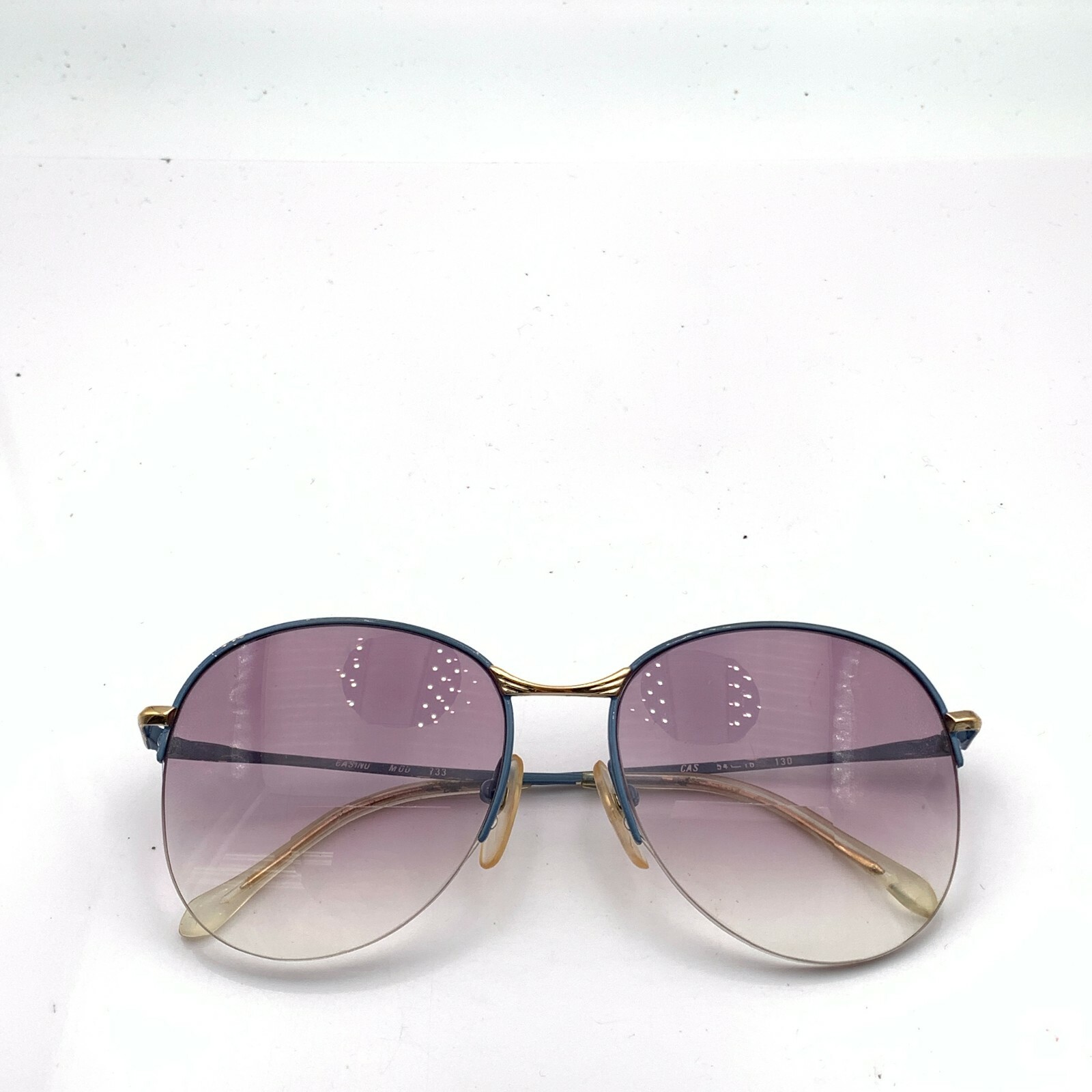 как выглядит Vintage Casinio 733 Blue Gold Metal Oval Half-Rimmed Sunglasses FRAMES ONLY фото