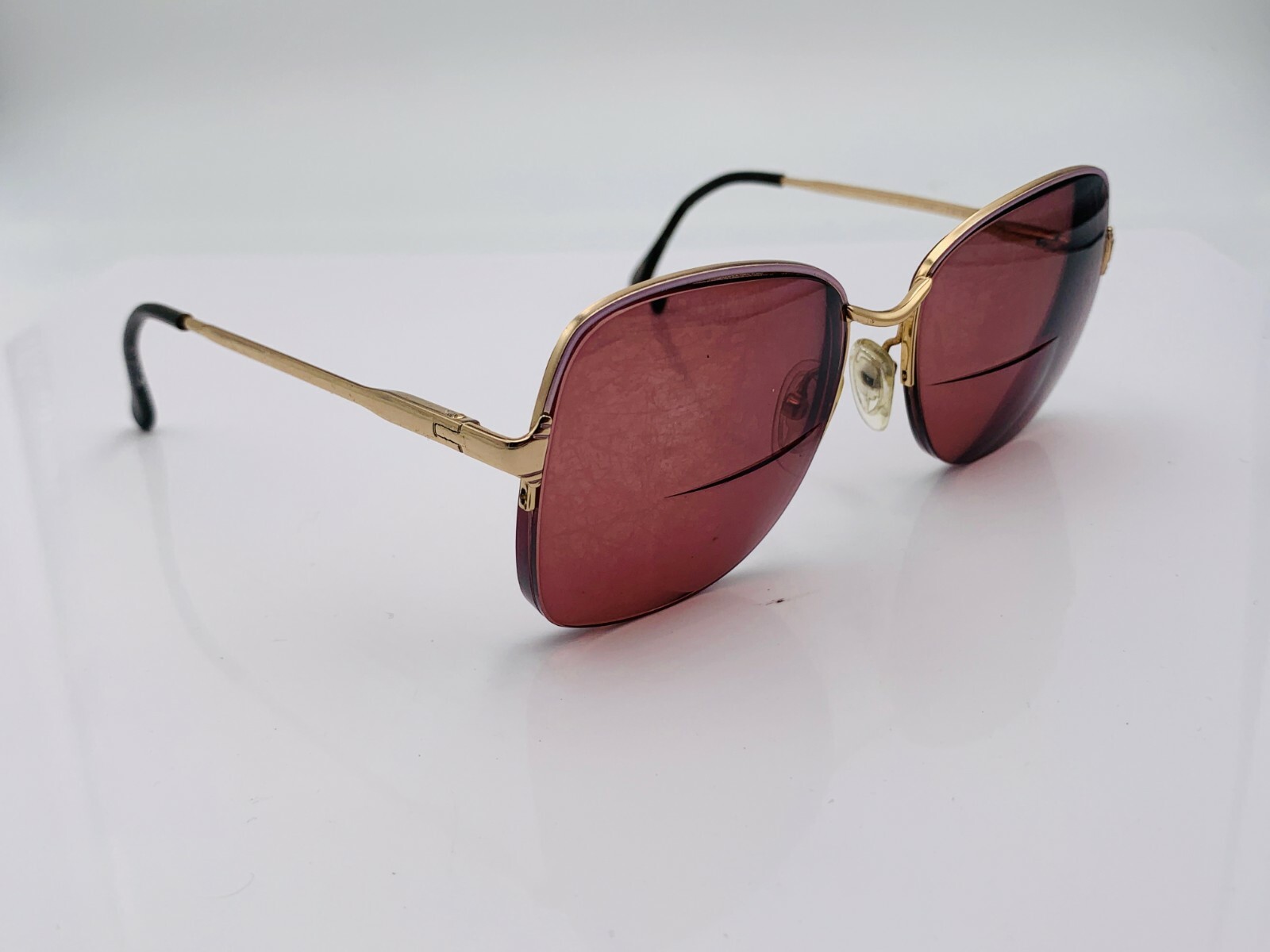 как выглядит Vintage BerDel Jeannie Pink Gold Metal Oval Half-Rimmed Sunglasses FRAMES ONLY фото