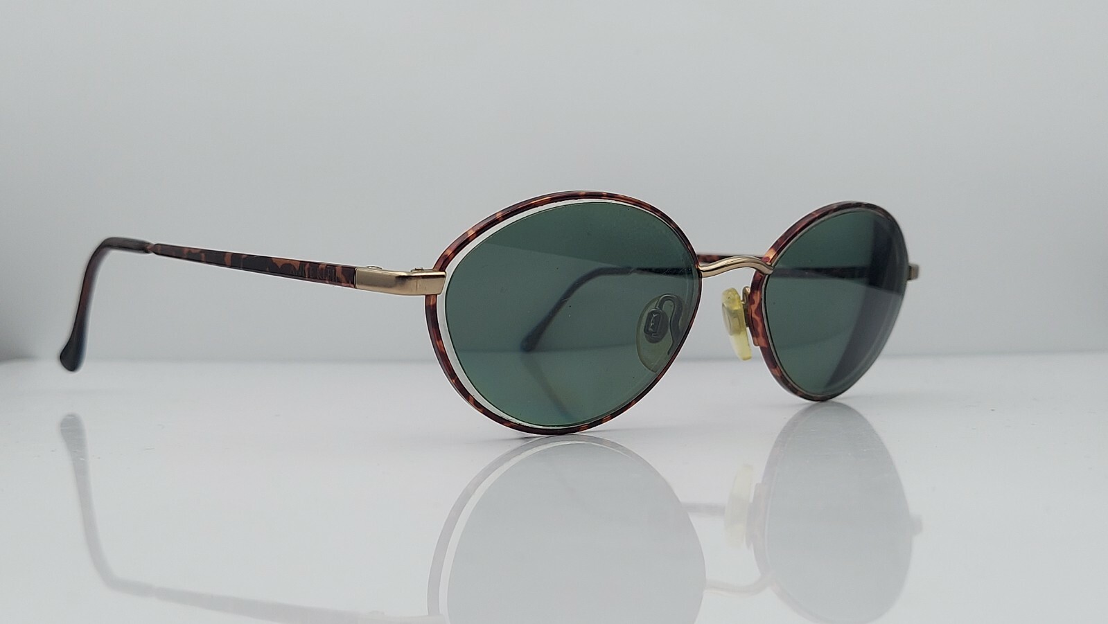 как выглядит Vintage Anne Klein 8003 K1017-S Brown Gold Oval Italy Sunglasses FRAMES ONLY фото