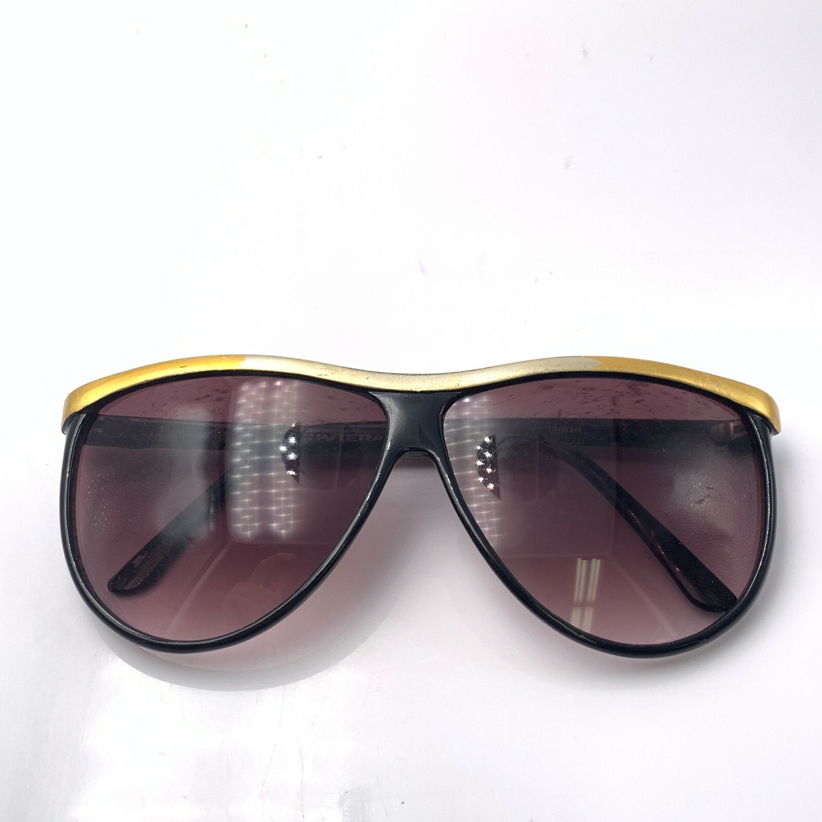 Vintage Anne Klein Riviera Black Gold Oval Sunglasses Taiwan FRAMES ONLY