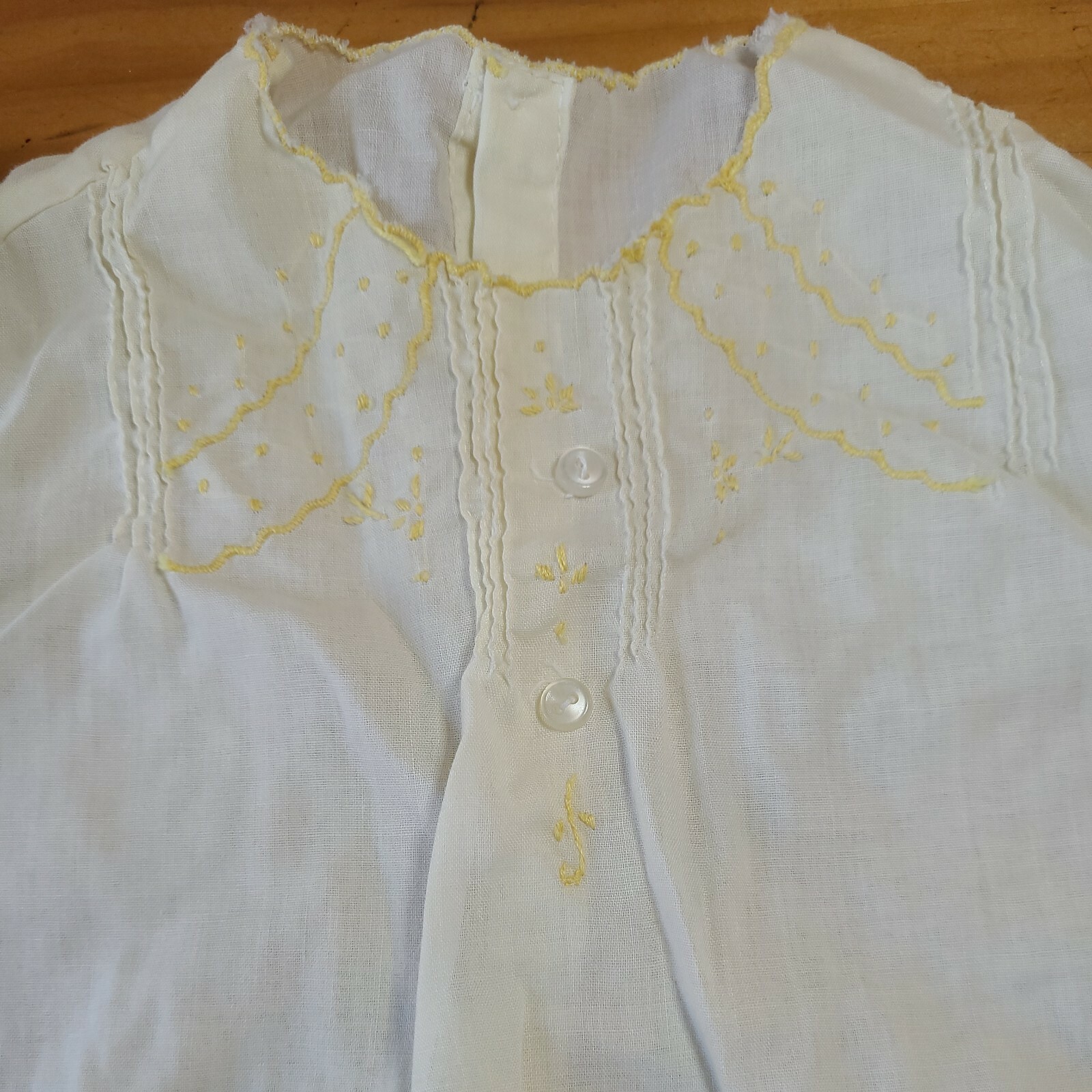 Vintage Child's Embroidered Pintucked Gown Dress Yellow Ivory Doll Wear Cotton