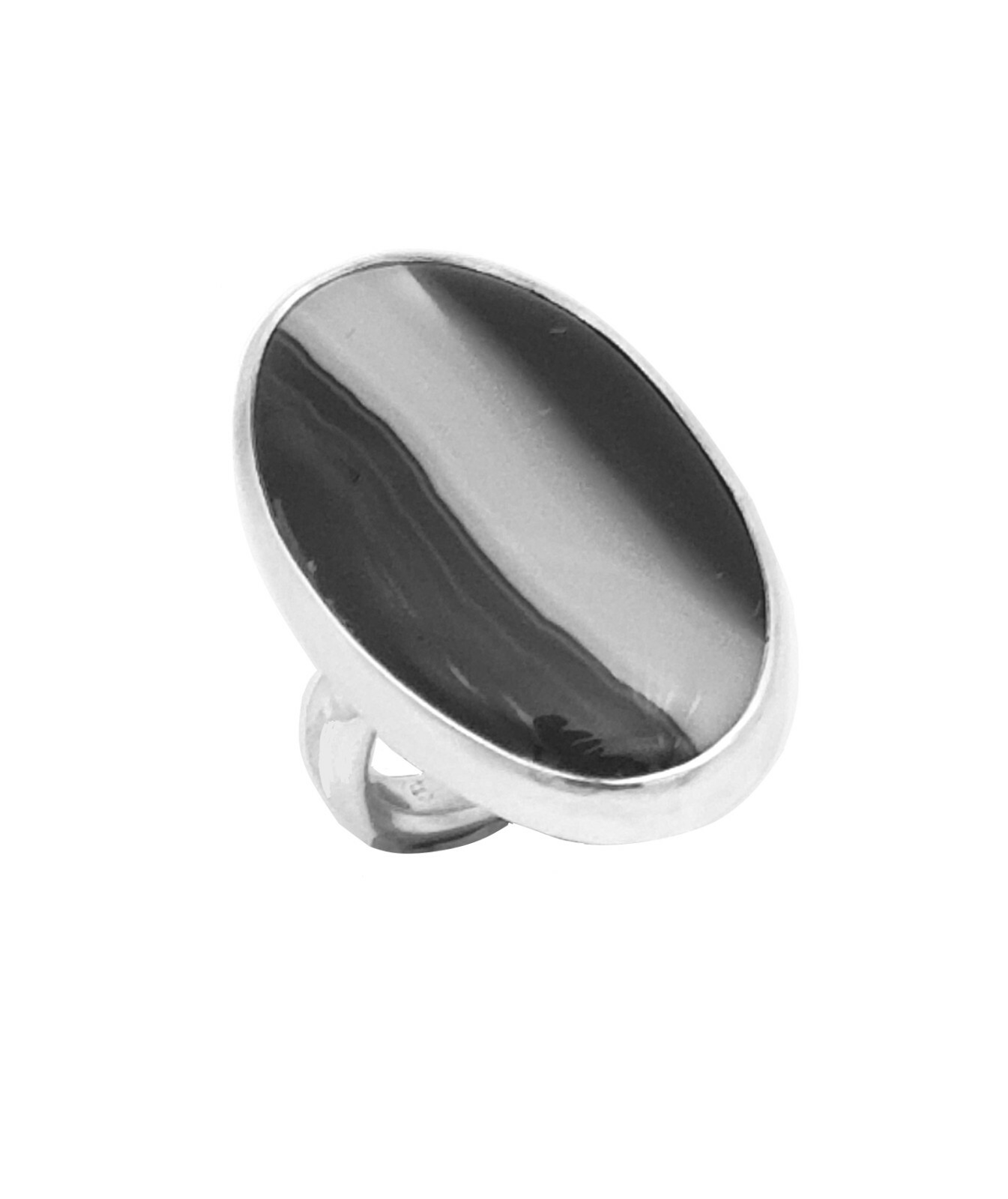 Sterling Silver Banded Agate Bezel Set Ring Handmade