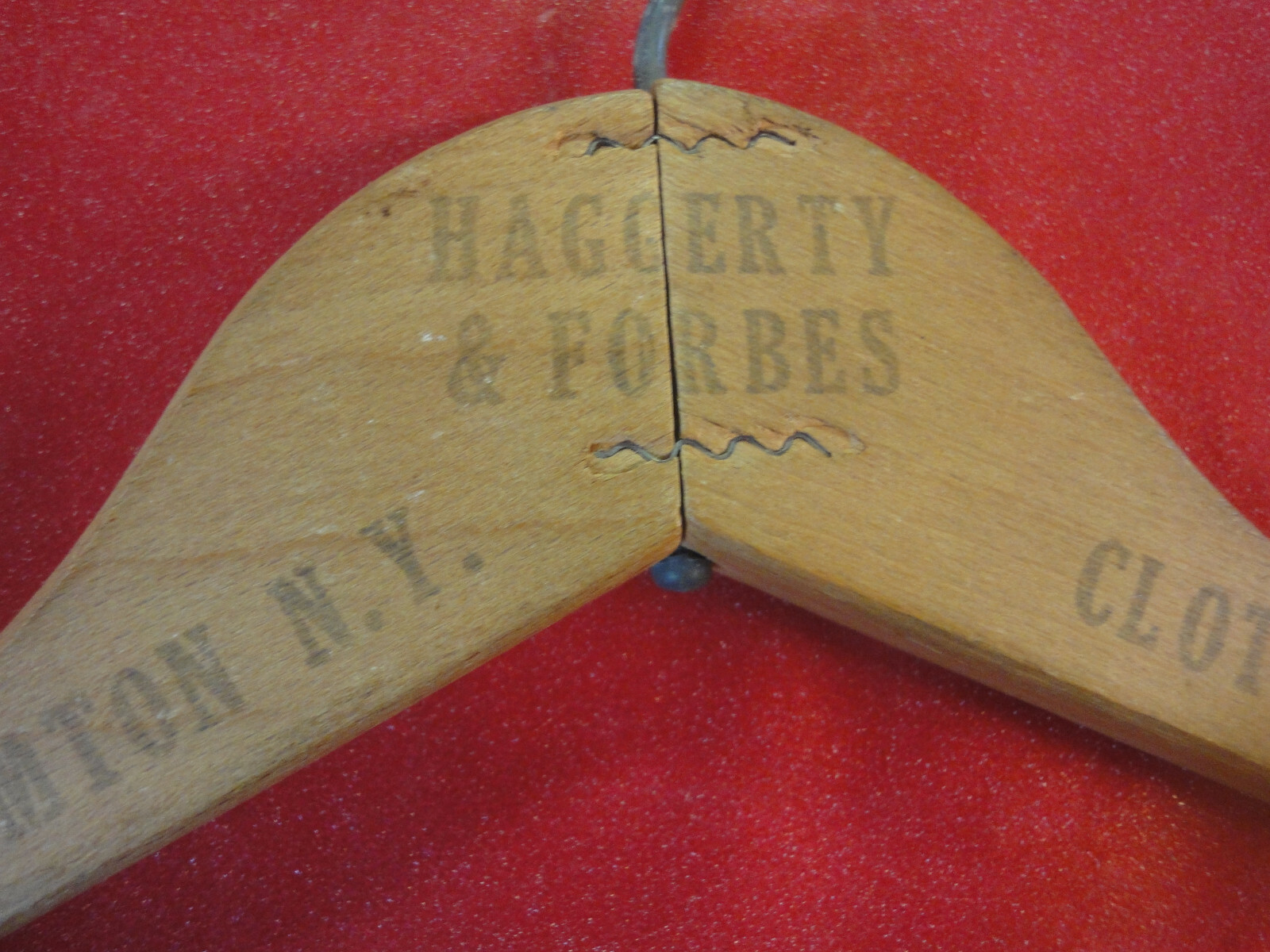haggerty forbes Clothiers Binghamton NY vintage wood clothes hanger