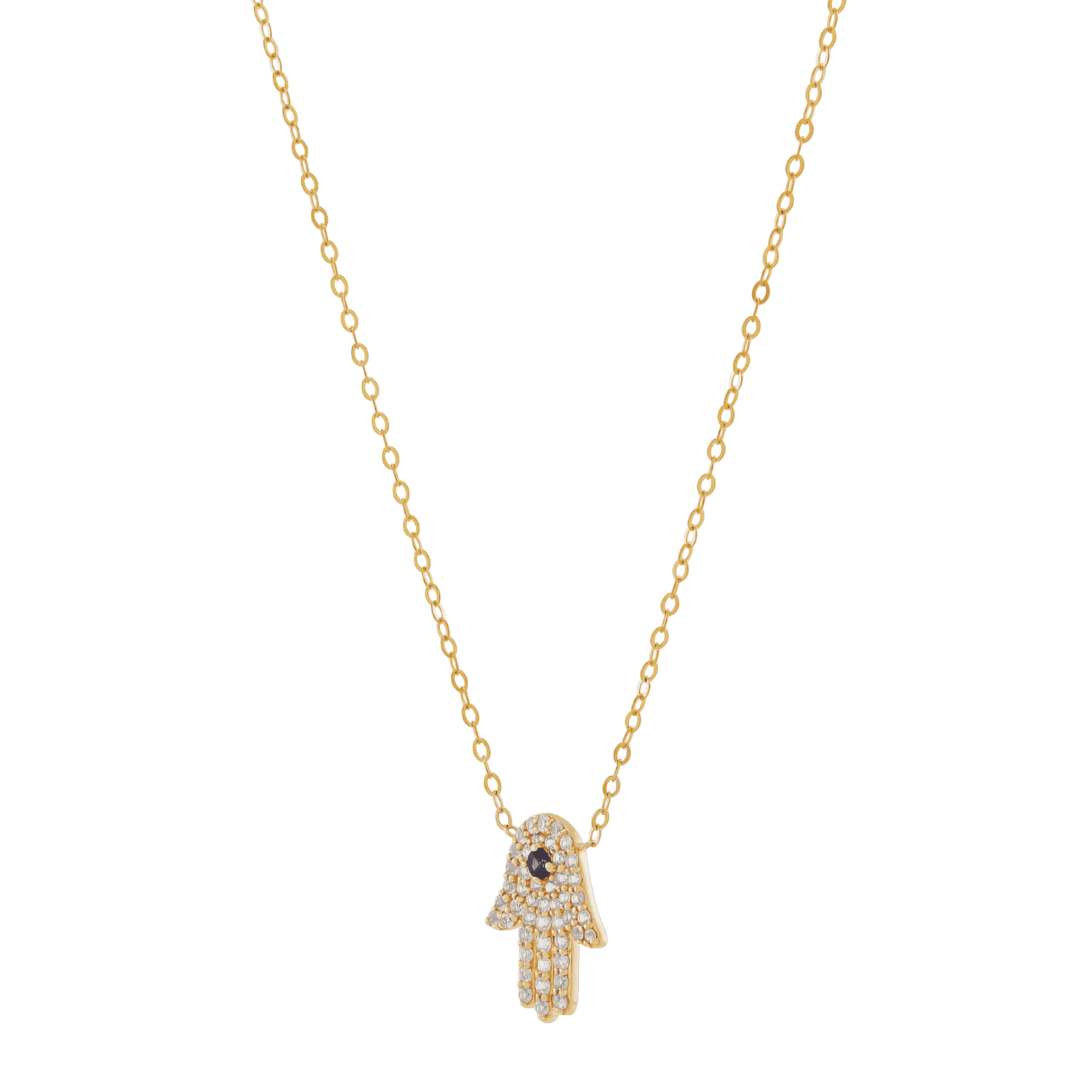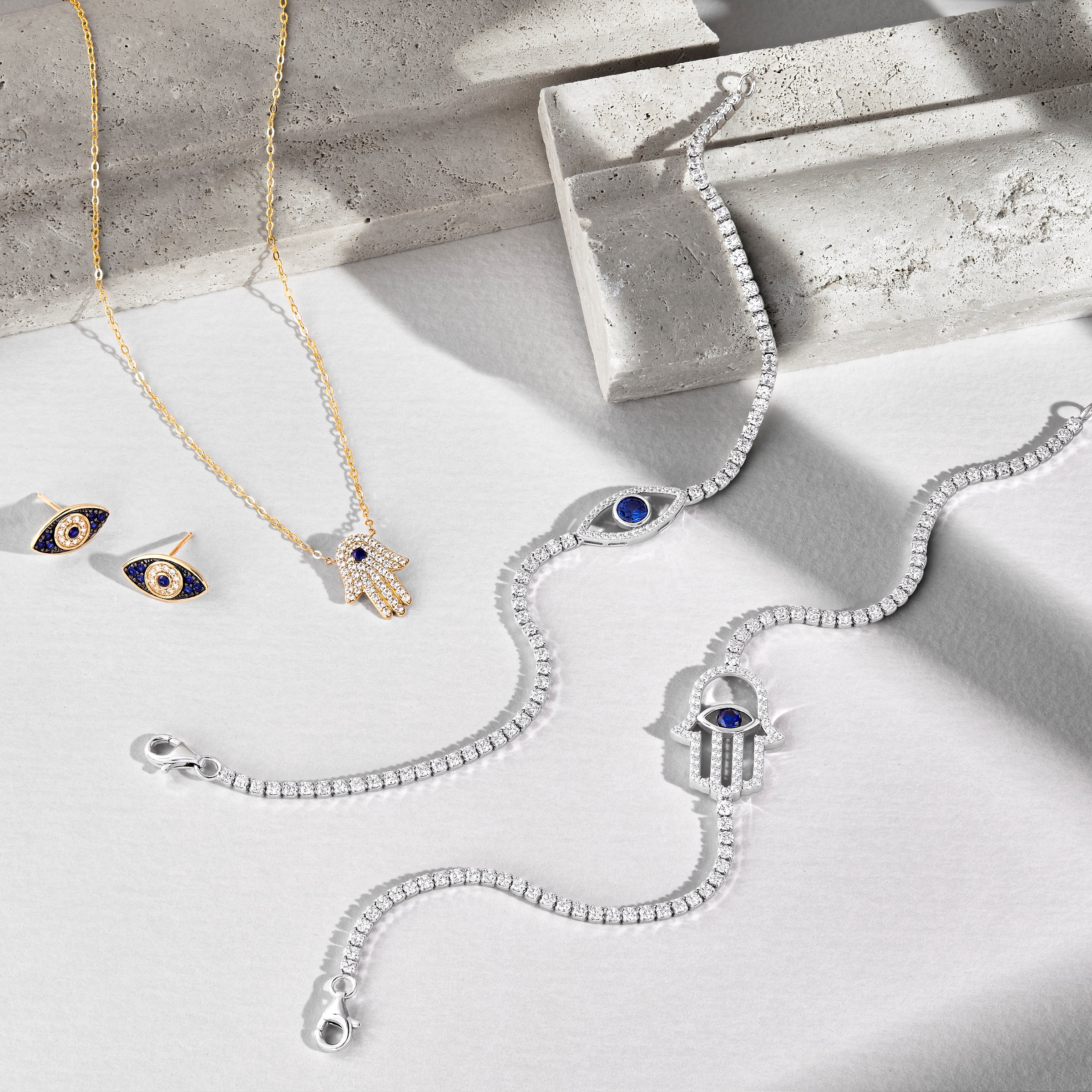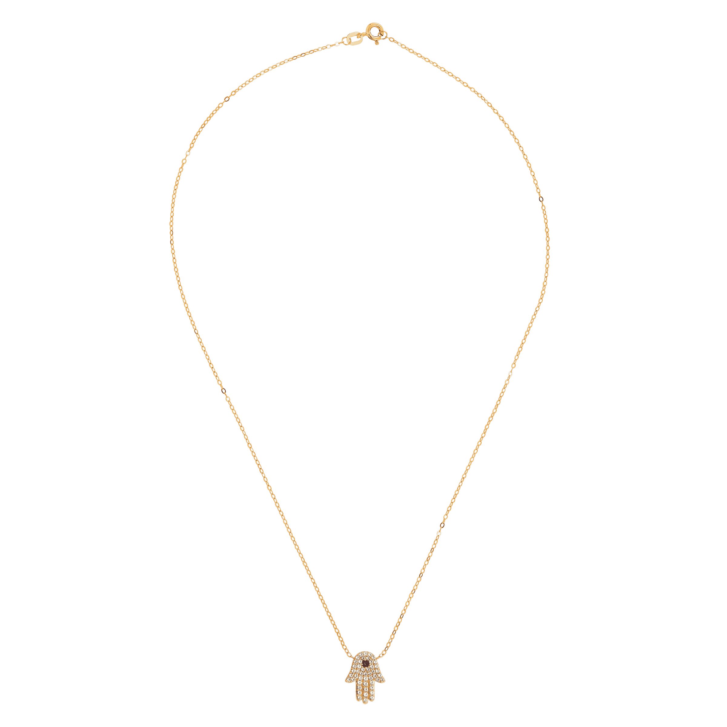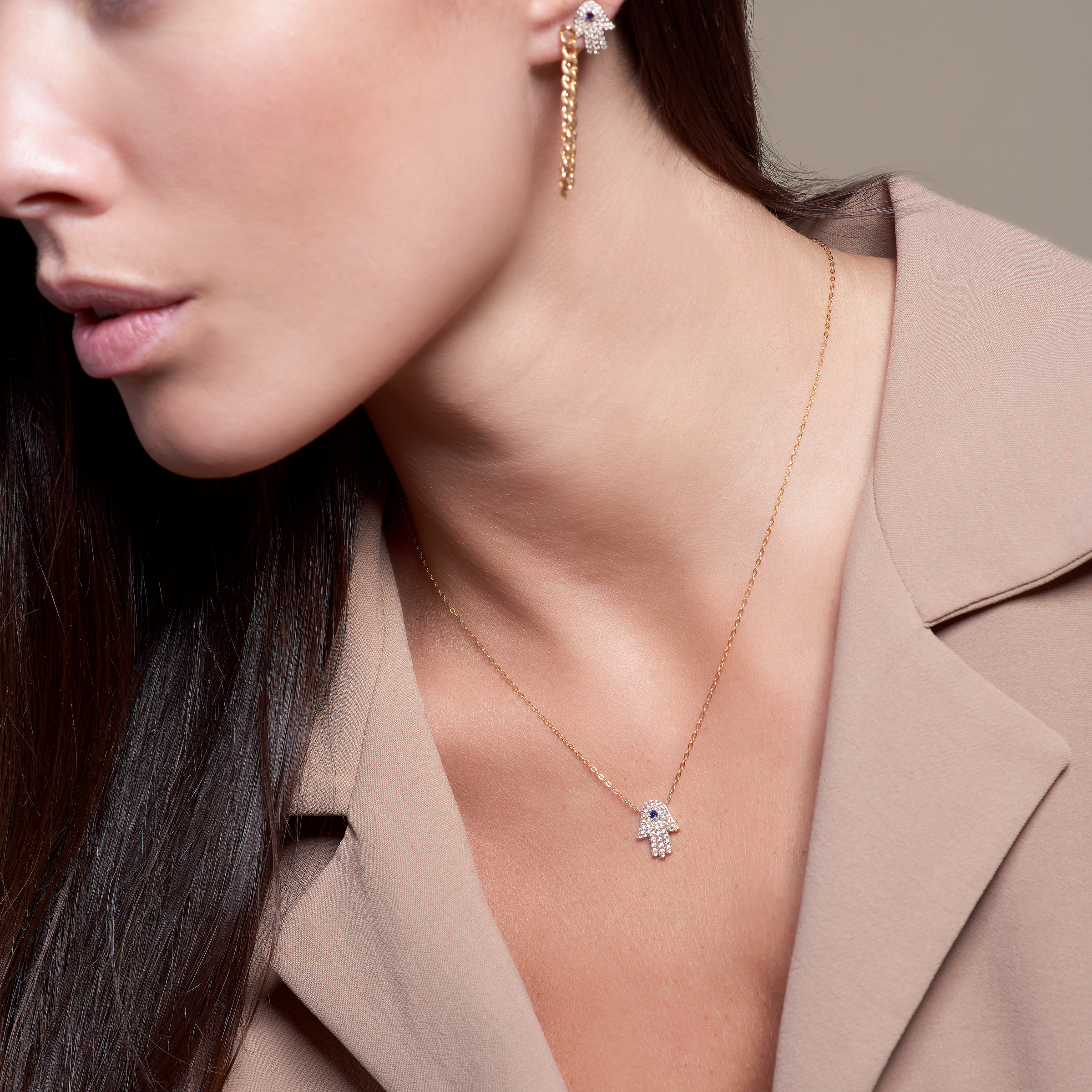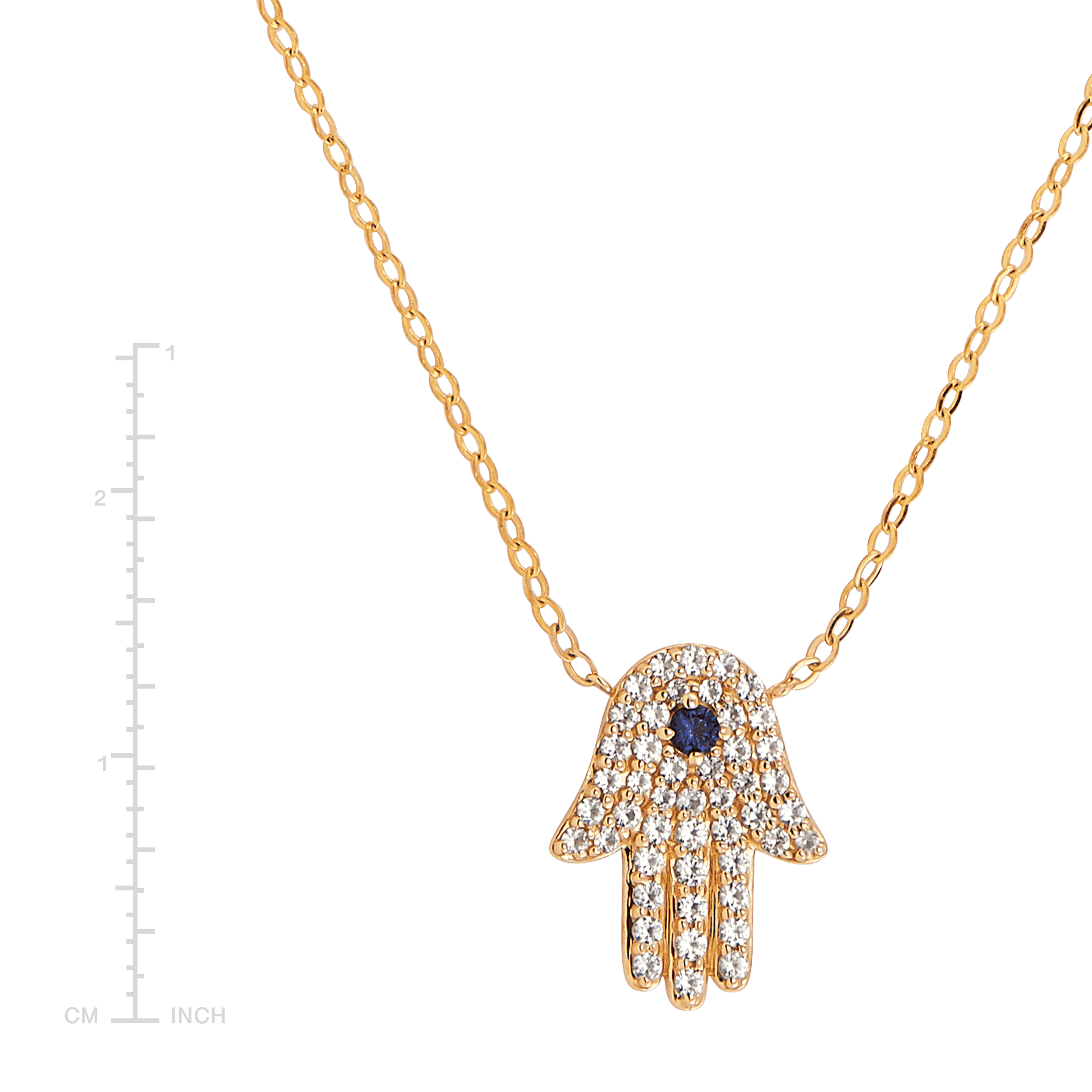 Welry Hamsa Pendant Necklace with Lab-Created Sapphires in 10K Yellow Gold, 17