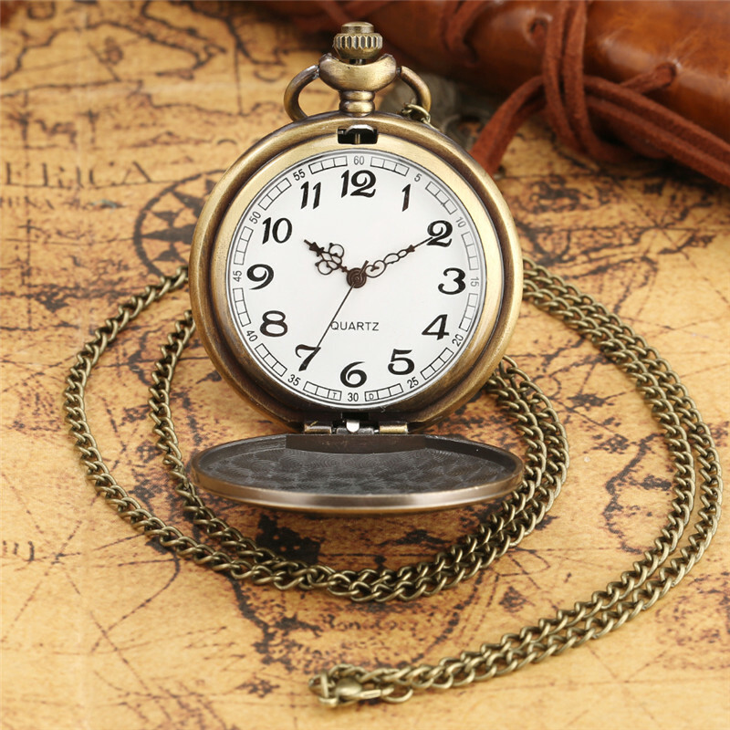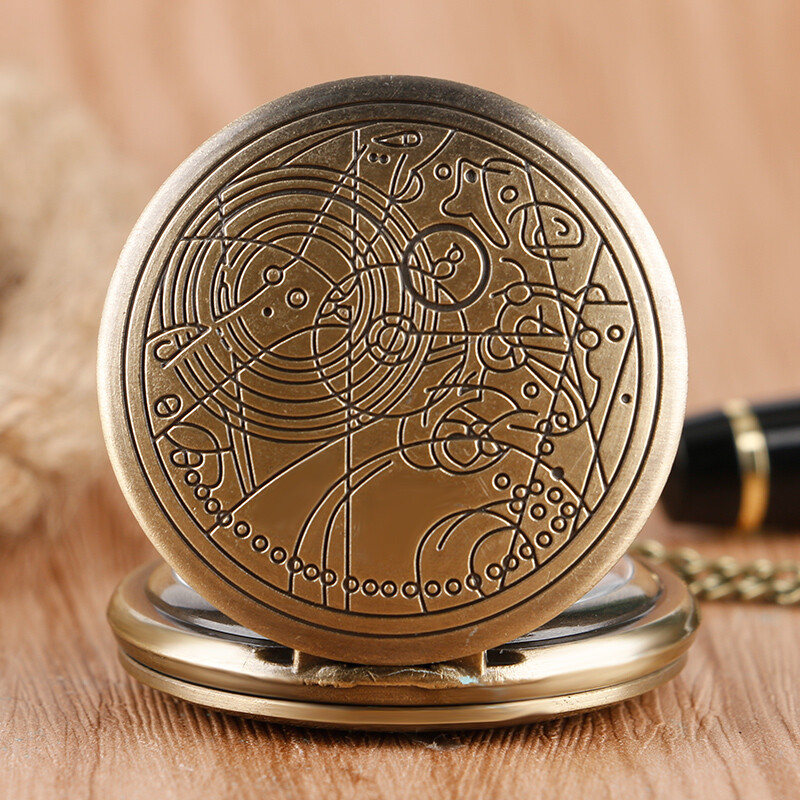 Vintage Bronze Quartz Pocket Watch Doctor Who Compass Pattern Pendant Retro Gift