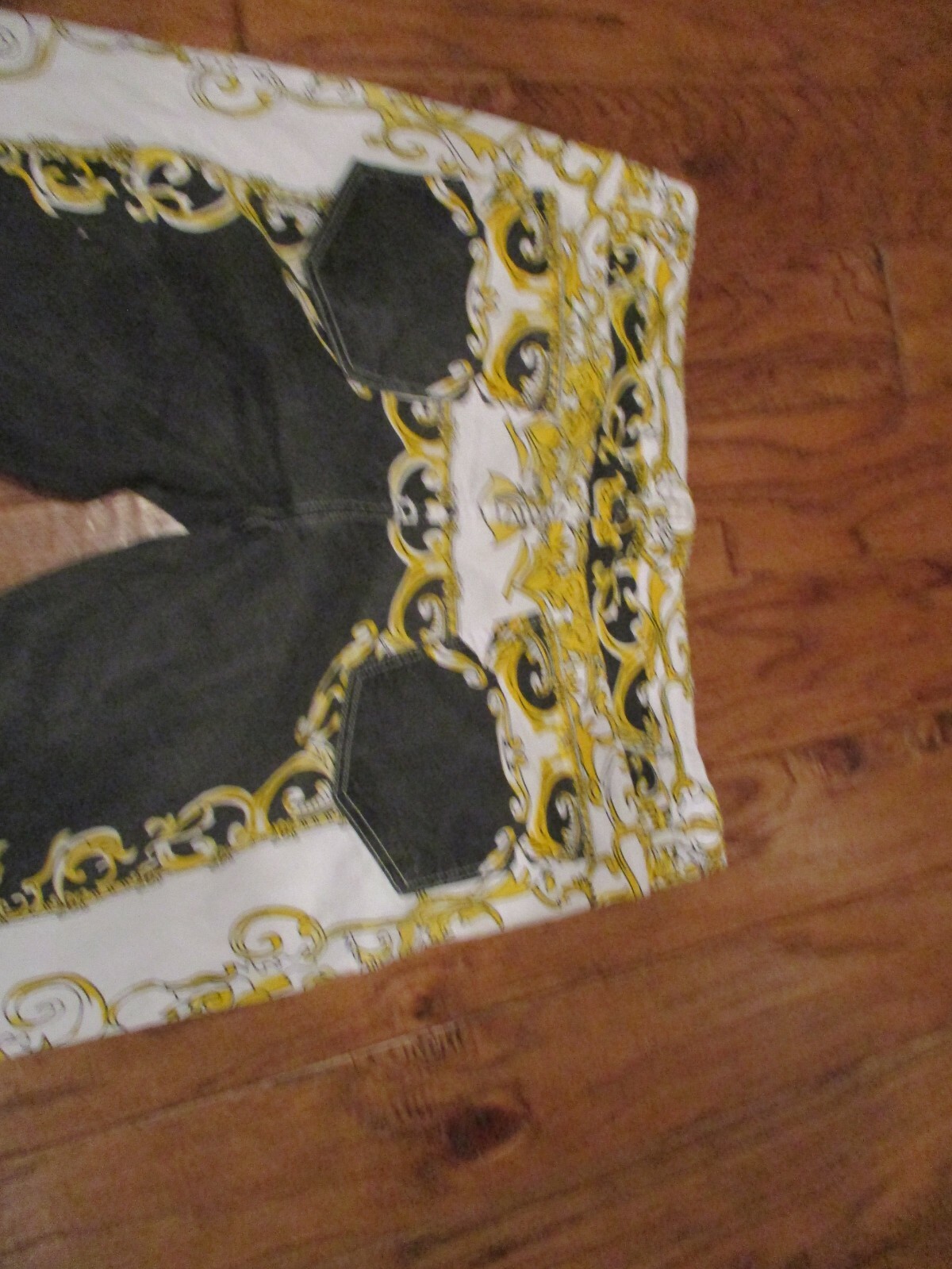 как выглядит White Jean w/black gold 97 Cotton 3 Spandex Size 40 Mexican Parties Wedding фото