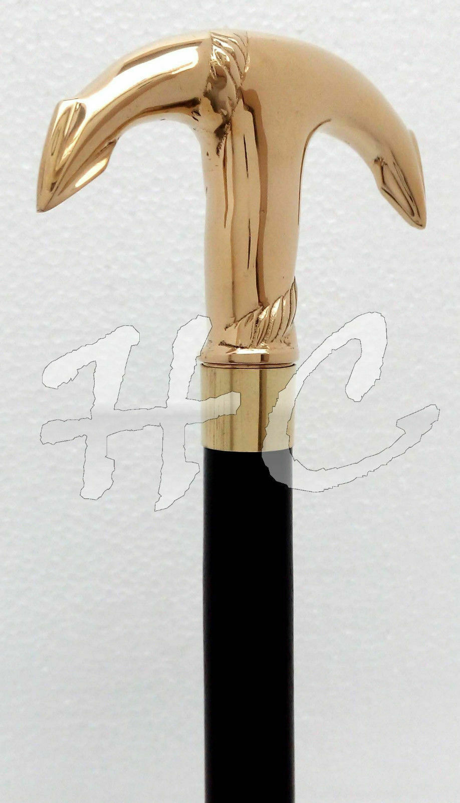 Vintage Designer Brass Handle Antique Style Victorian Cane Wooden Walking Stick