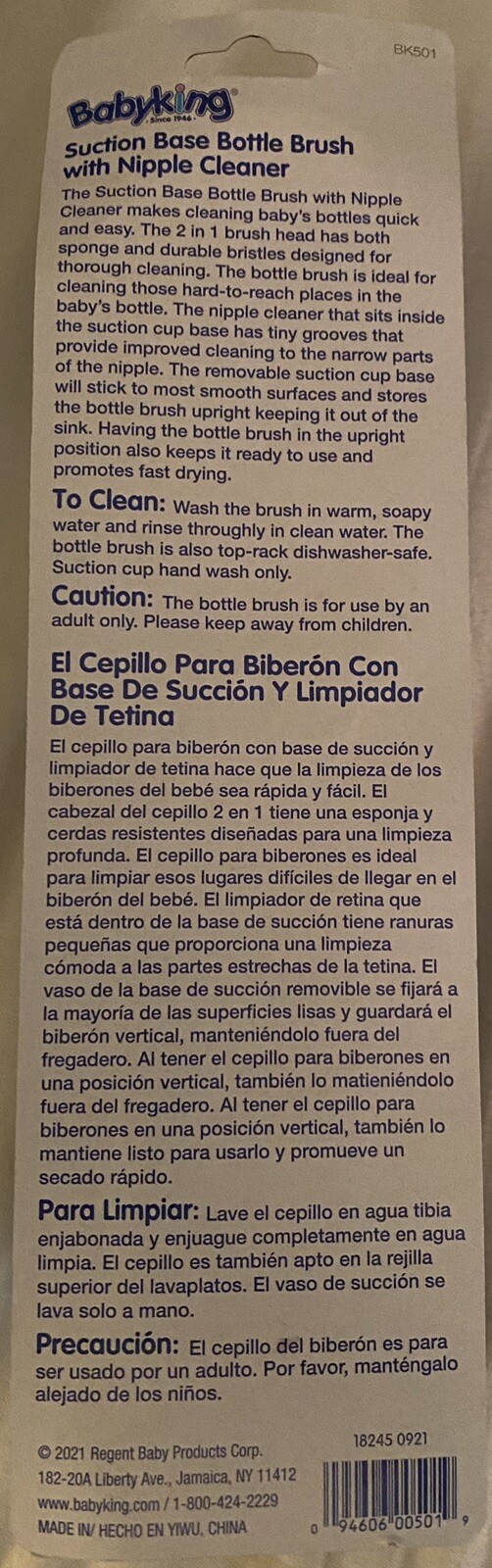 Babyking Blue Suction Base Bottle Brush W/ Nipple Cleaner Baby Supplies