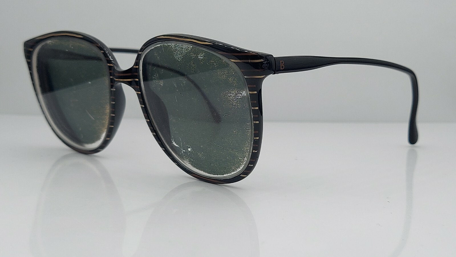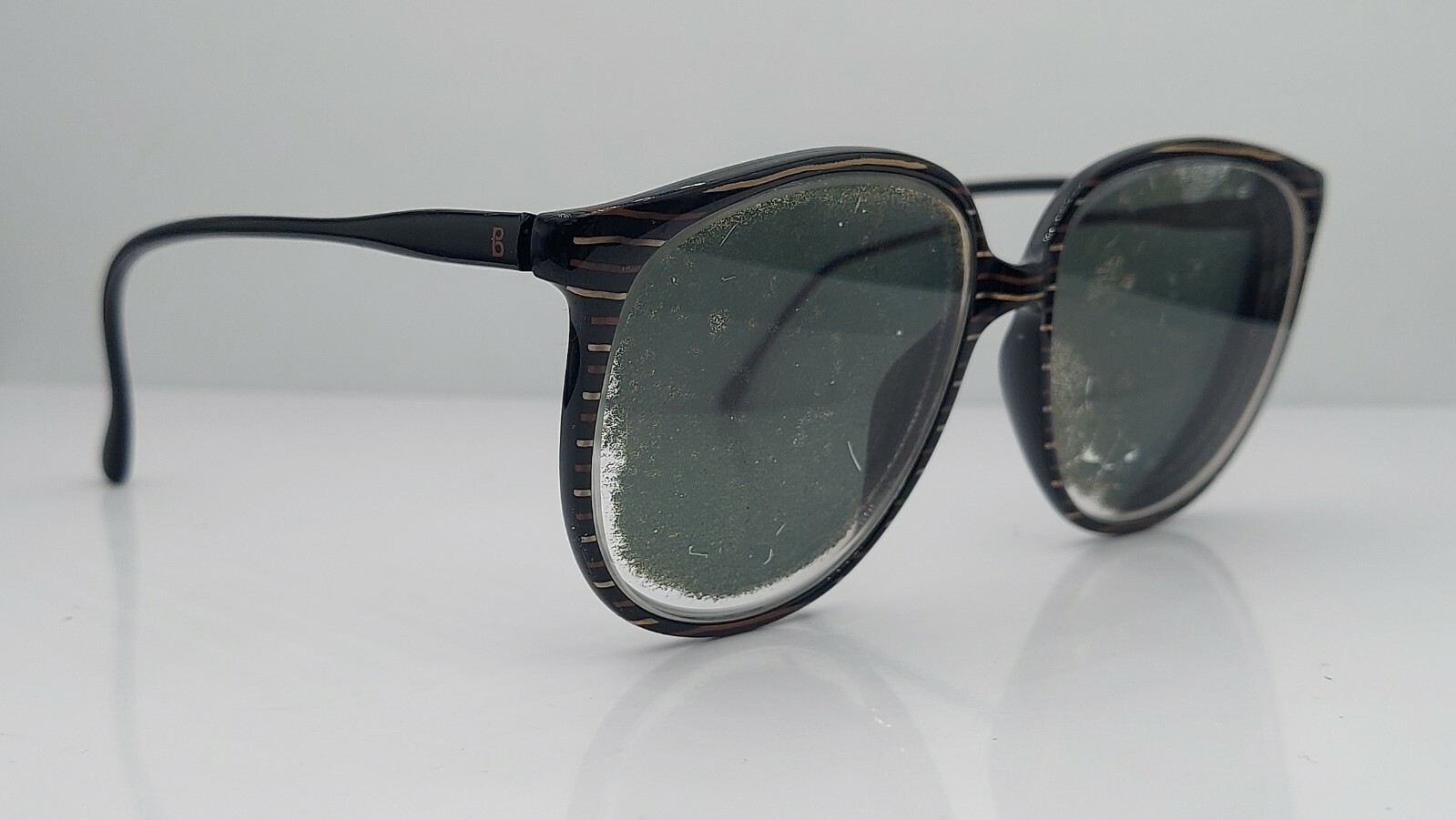 как выглядит Vintage Terri Brogan 8694 Black Striped Oval Sunglasses FRAMES ONLY Yugoslavia фото