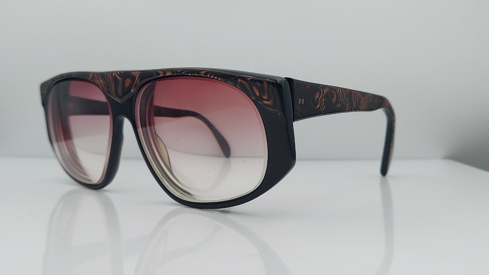 как выглядит Vintage Sanford Hutton Black Brown Oval USA Sunglasses FRAMES ONLY фото