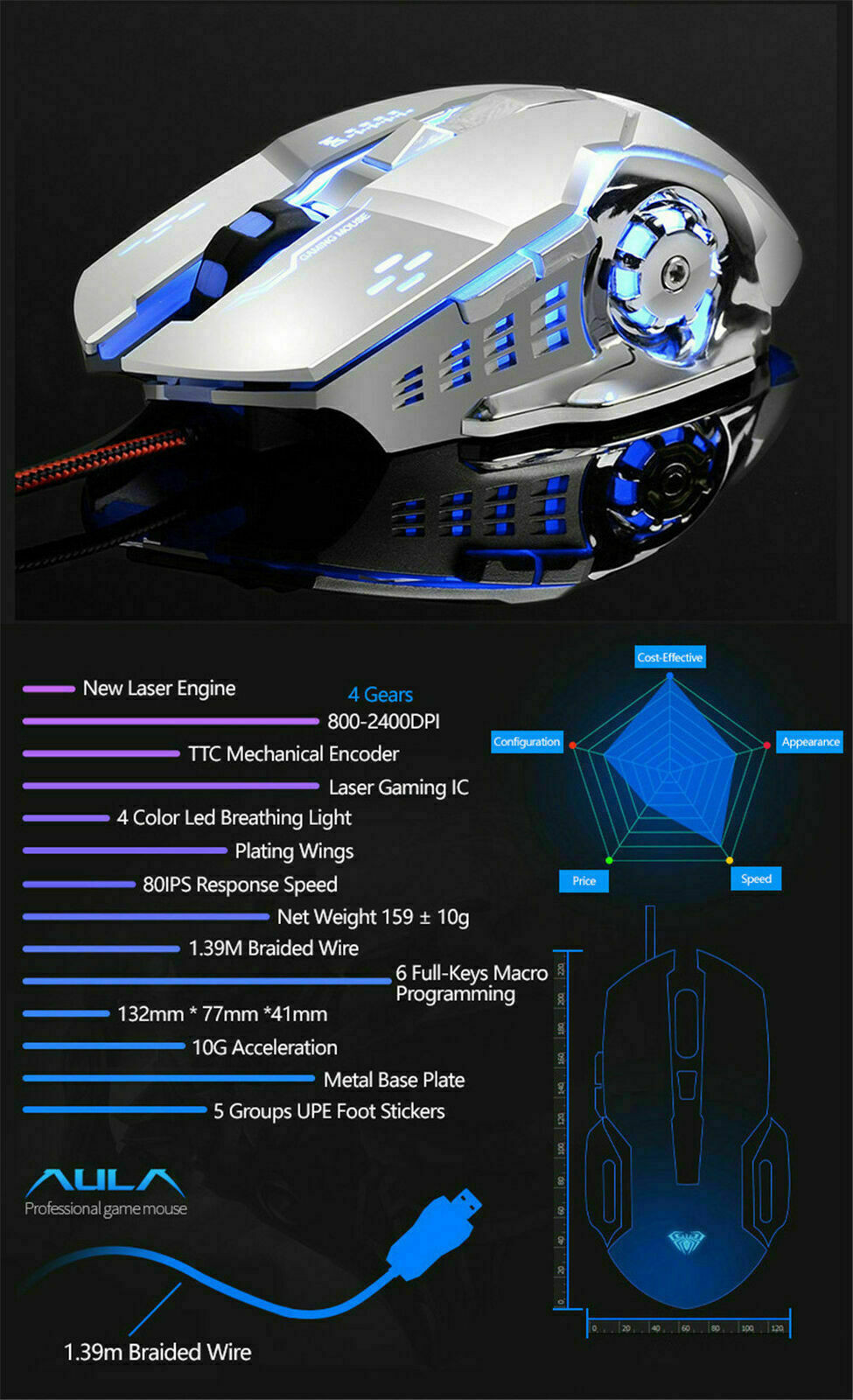 Особенности: Adjustable DPI, Ergonomic, LED Lighting, Scroll Wheel, 4 Color LED, optical usb gaming mouse, 800/1200/1600/2400DPI