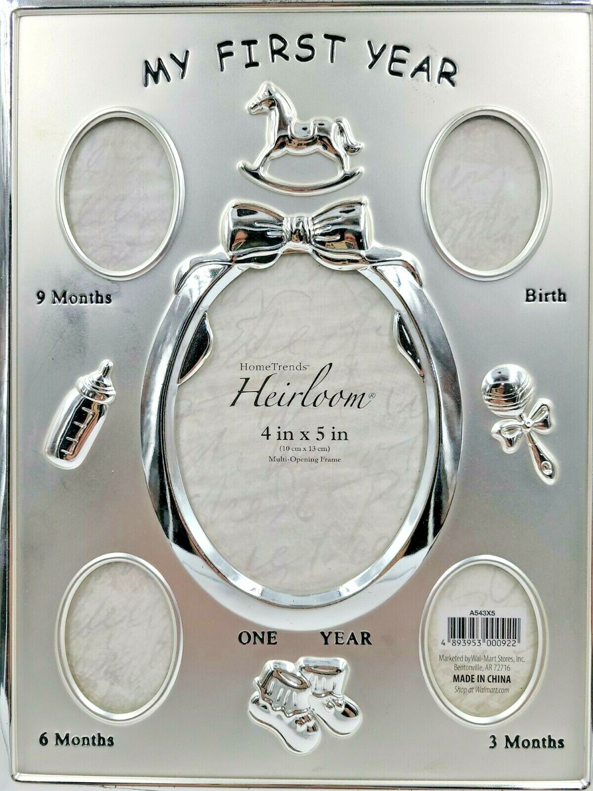 Home Trends 'My First Year' 5 Baby Picture Frame Silver Freestand or Wall Mount