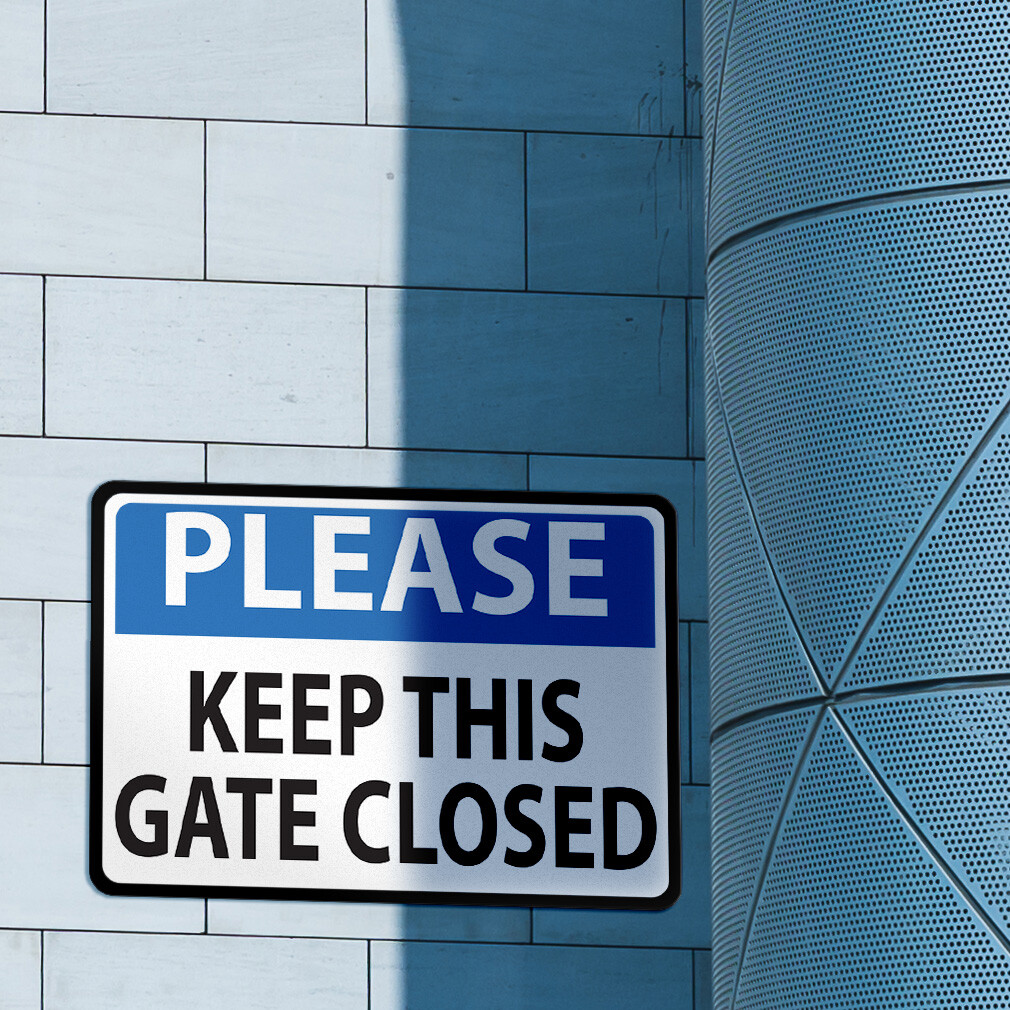 Aluminum Horizontal Metal Sign Keep Gate Closed Weatherproof Street Signage