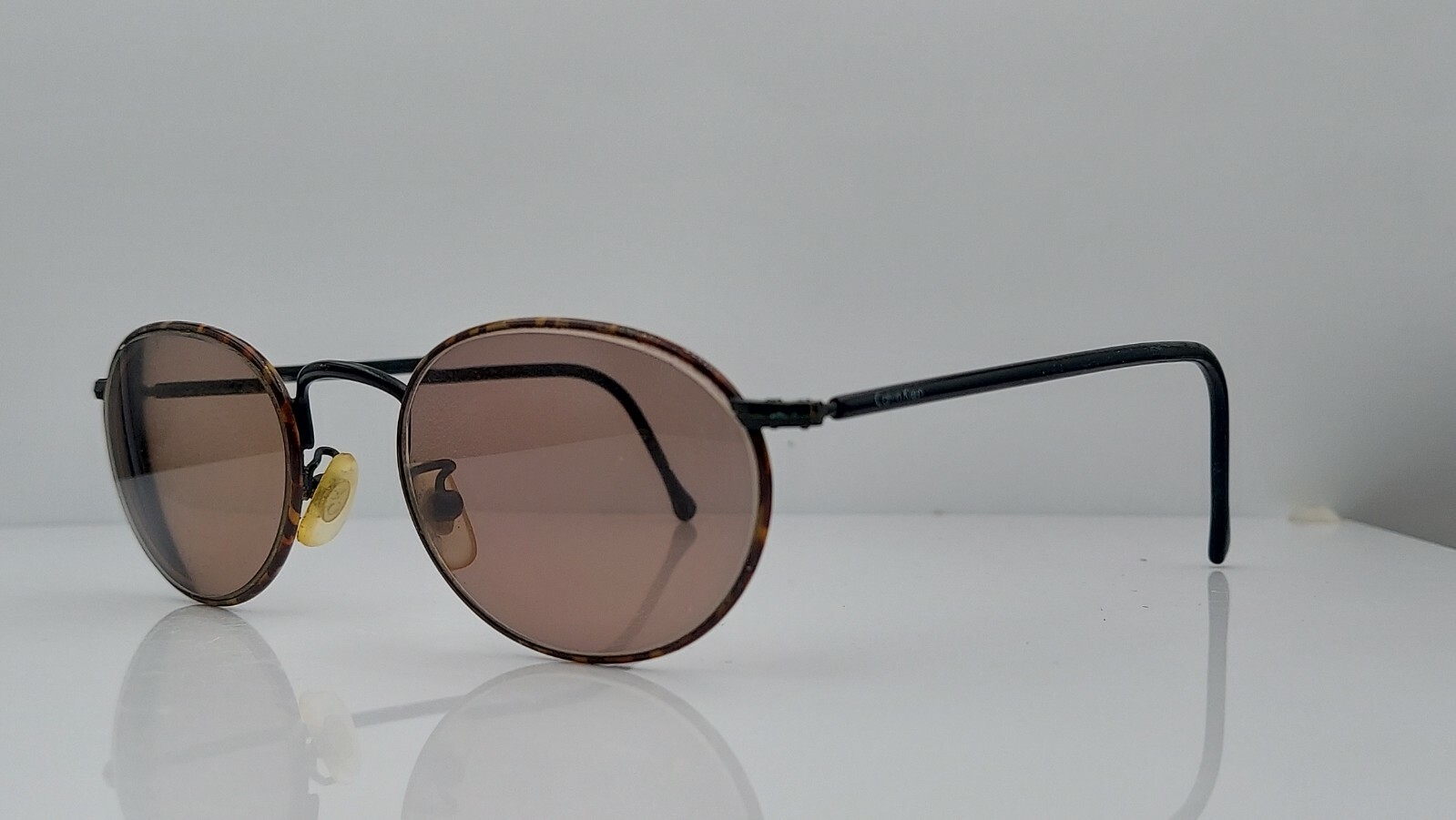 как выглядит Vintage Calvin Klein 3055 Black Brown Oval Italy Sunglasses FRAMES ONLY фото