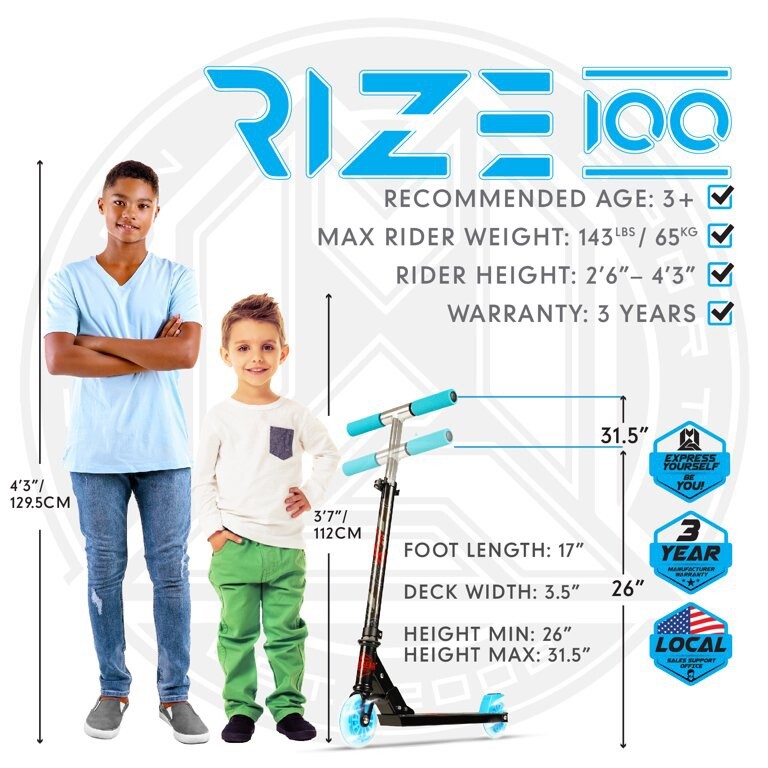 MADD GEAR CARVE RISE KICK SCOOTER LIGHT UP 100MM WHEELS, BLUE/BLACK Unisex 3