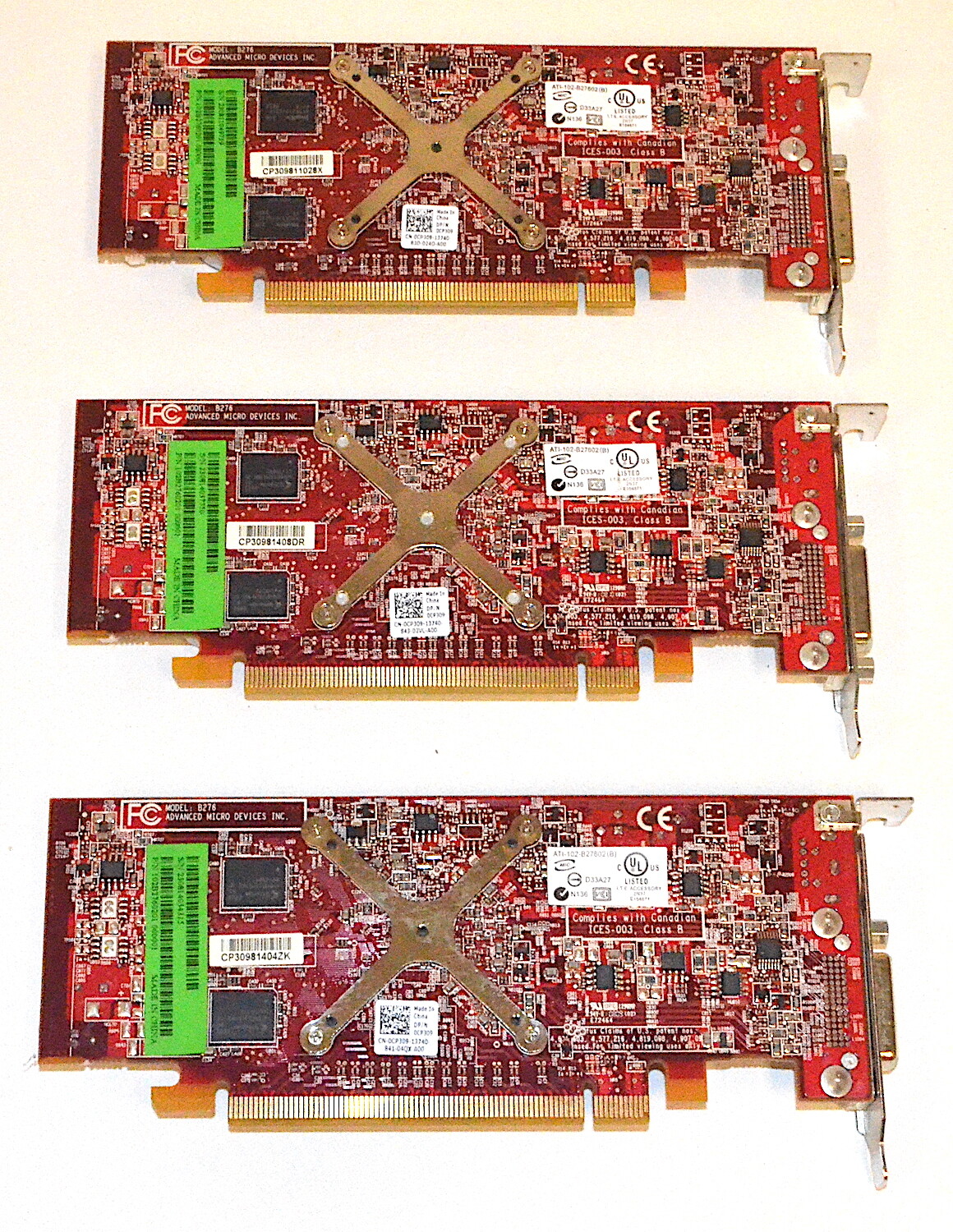 Lot of 3 Dell AMD Radeon HD 2400 XT Low Profile Video Cards Used 0CP309