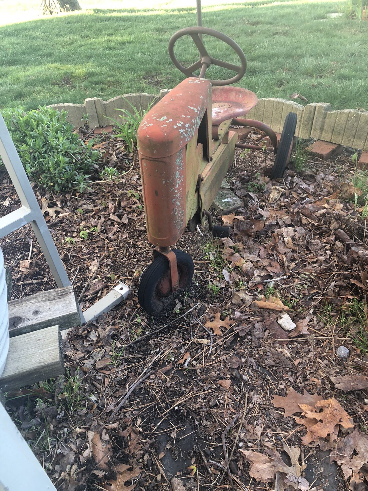 как выглядит Vintage Early 1960 s AMF Rare Orange Metal Go Trac Chain Drive Pedal Tractor фото