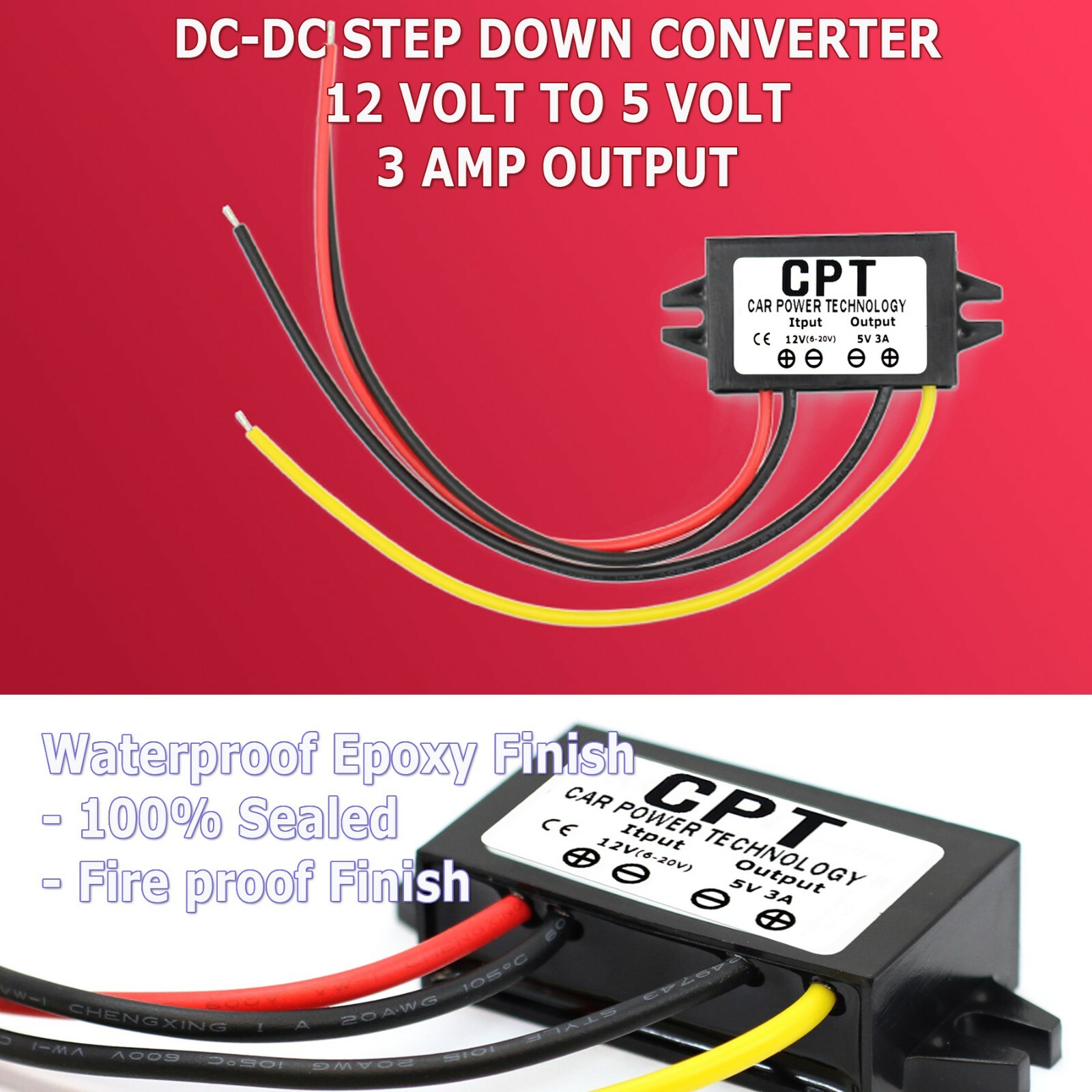 Waterproof DC-DC Converter 12V Step Down to 5V Power Supply Module 3A 15W BLACK